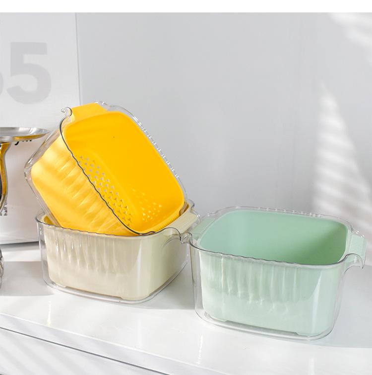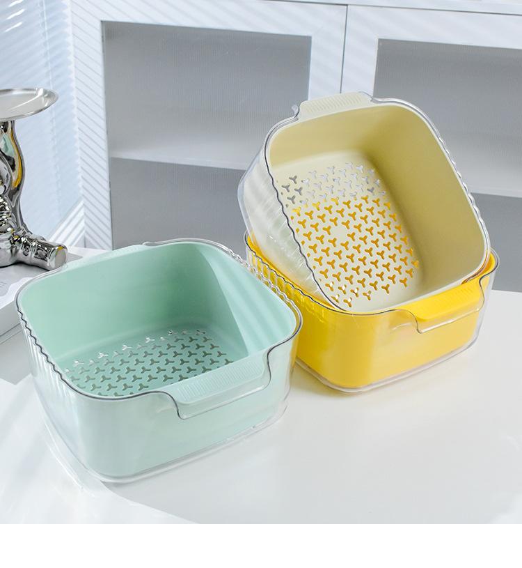 Medium transparent-yellow double-layer drain basket [pet+pp], Medium transparent-green double layer drain bask...