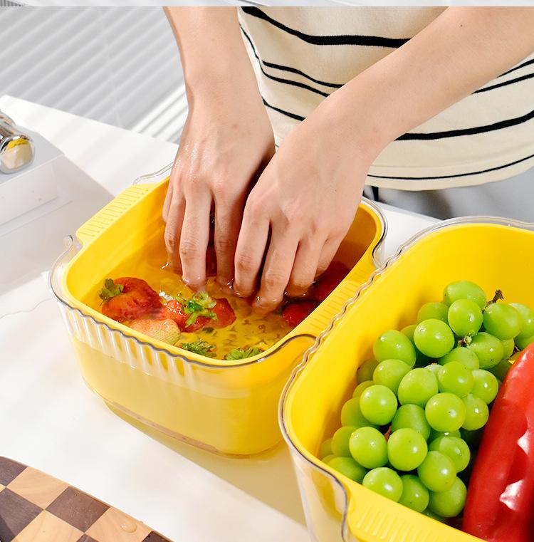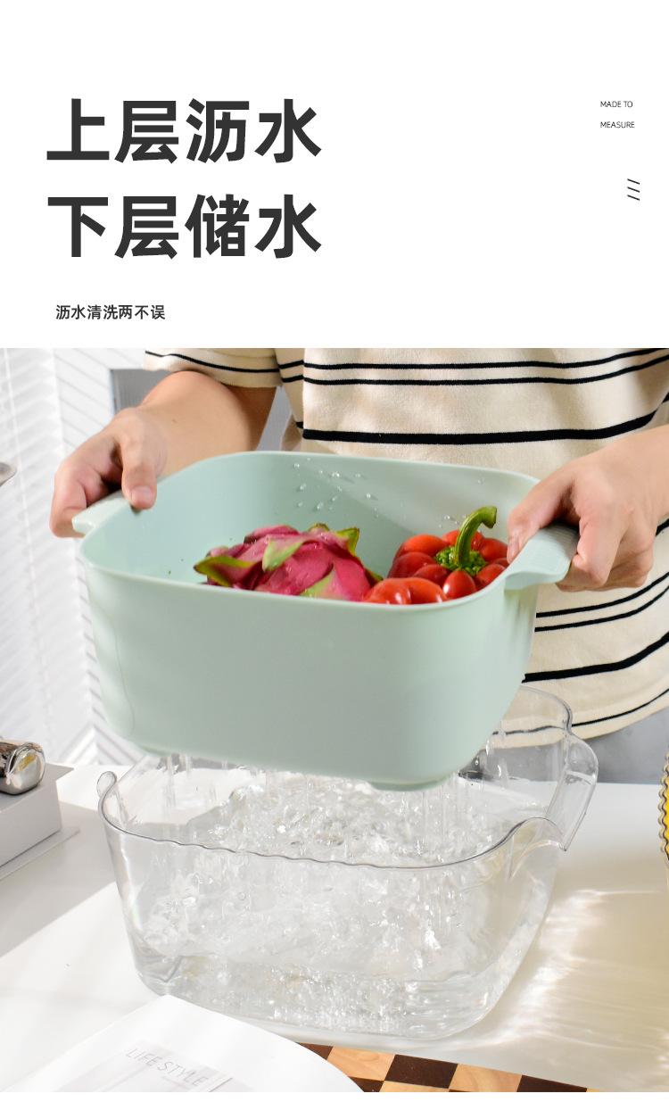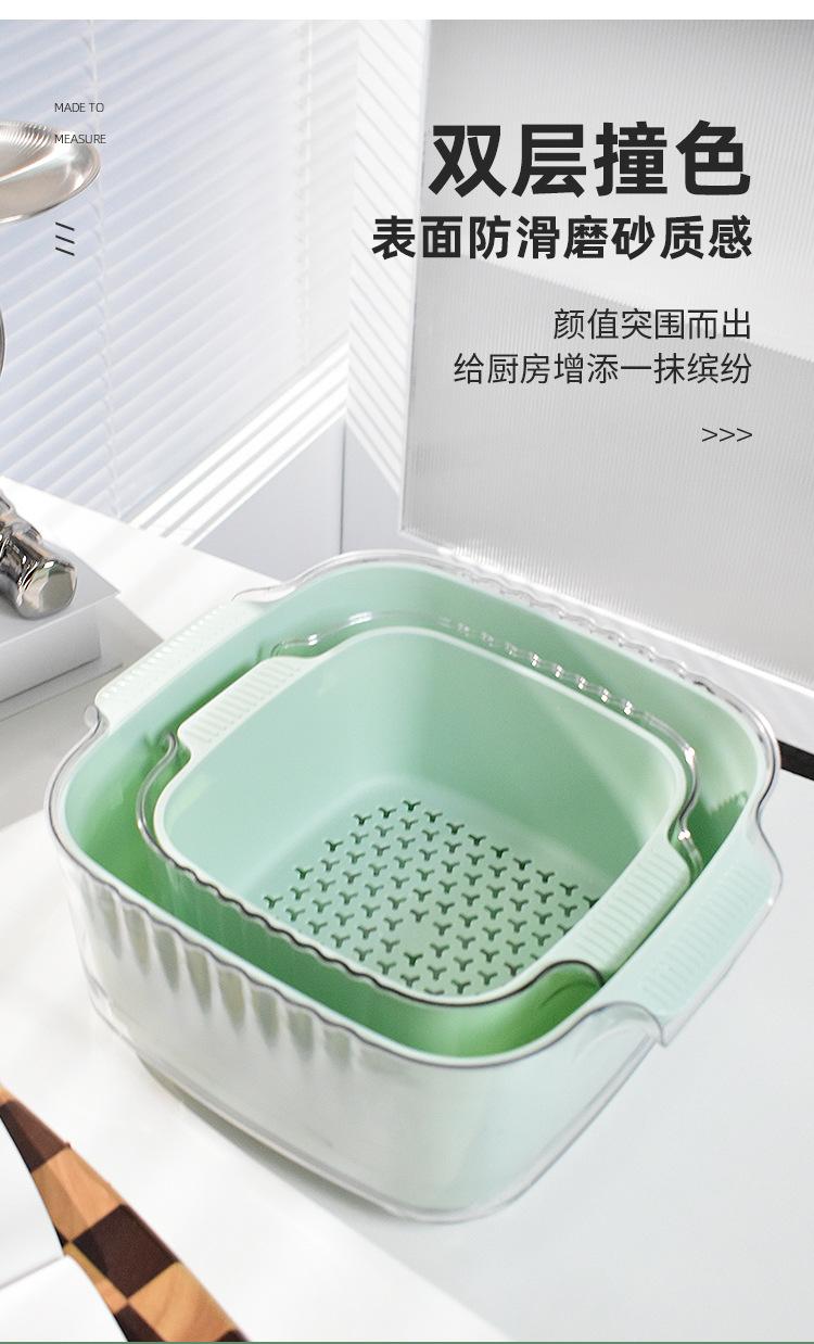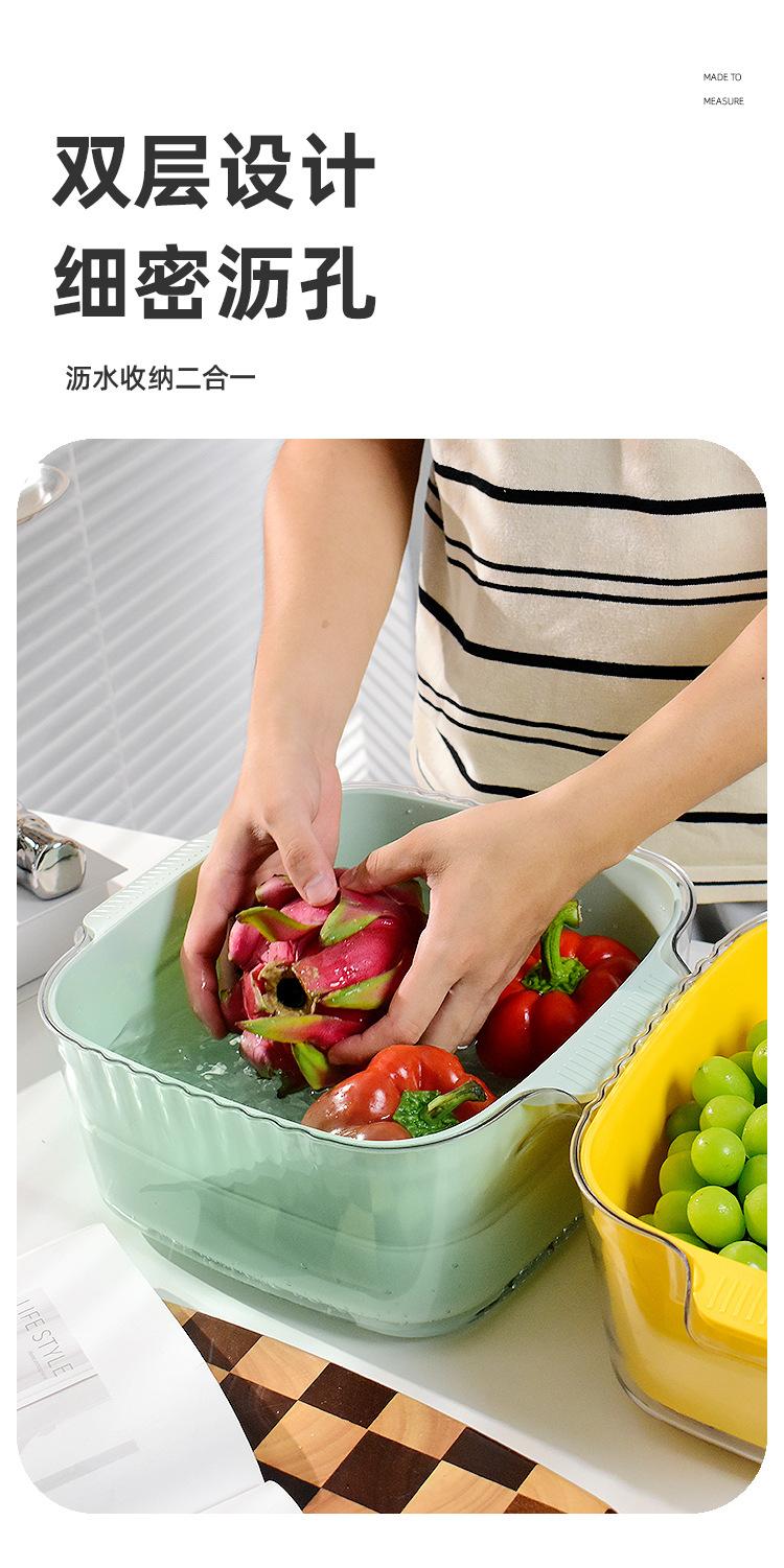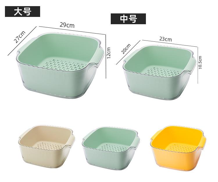 Cesta de Drenaje Grande de Doble Capa para Cocina Casera Plástico Fruta y Verdura Fabricante Personalizado Cesta Rectangular Ampliada para Uso en Cocina