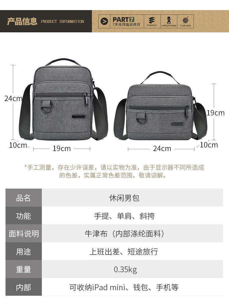 Bolso de Hombro para Hombre de Tela Oxford Estilo Coreano Moderno Impermeable Resistente al Desgaste Bolso Cruzado Moderno Informal Deportivo