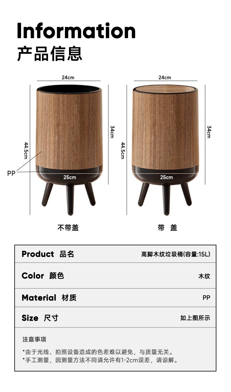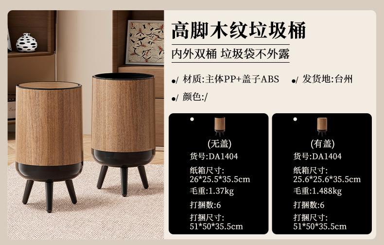Wood grain trash can with legs - no lid, Wood grain trash can with legs - with lid, Coverless model-wood grain...