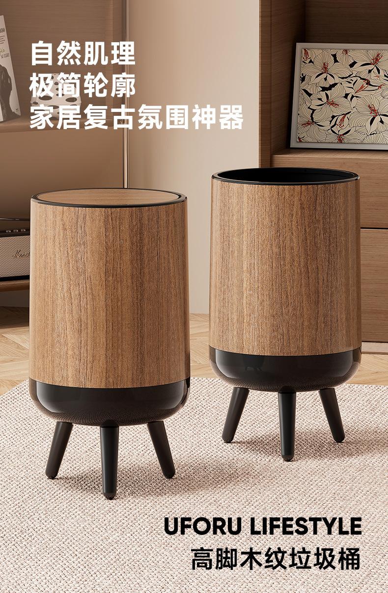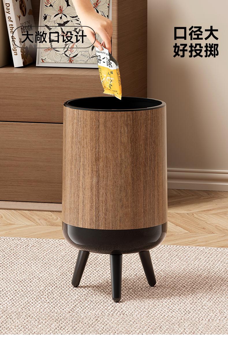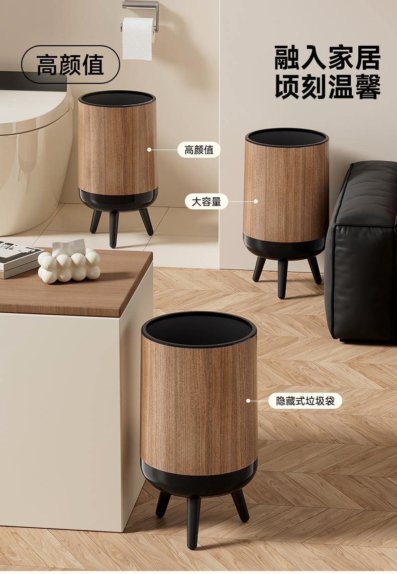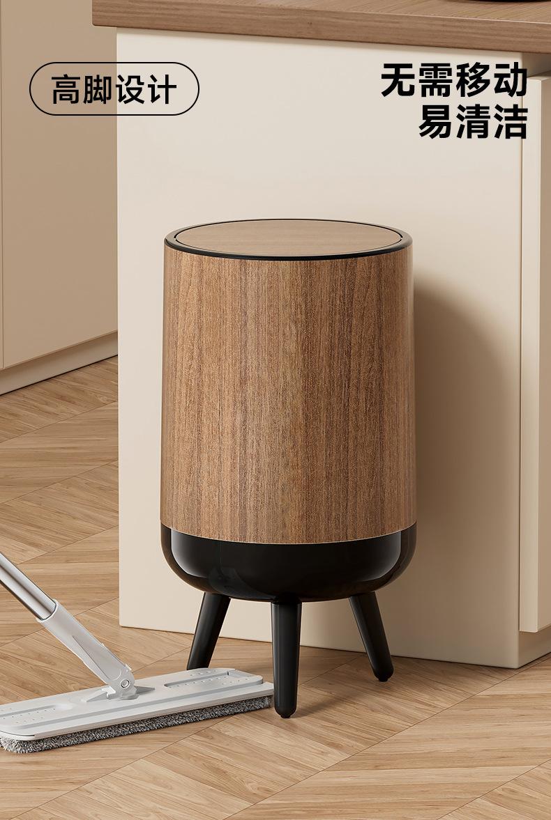 Bote de Basura con Textura de Madera para Uso Doméstico, Alta Gama de Gran Capacidad para Sala de Estar, Cocina, Baño, No Requiere Agacharse, con Tapa