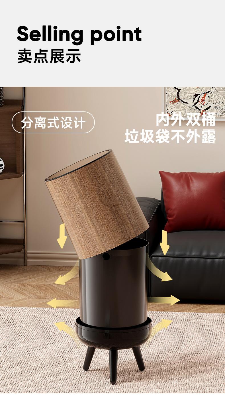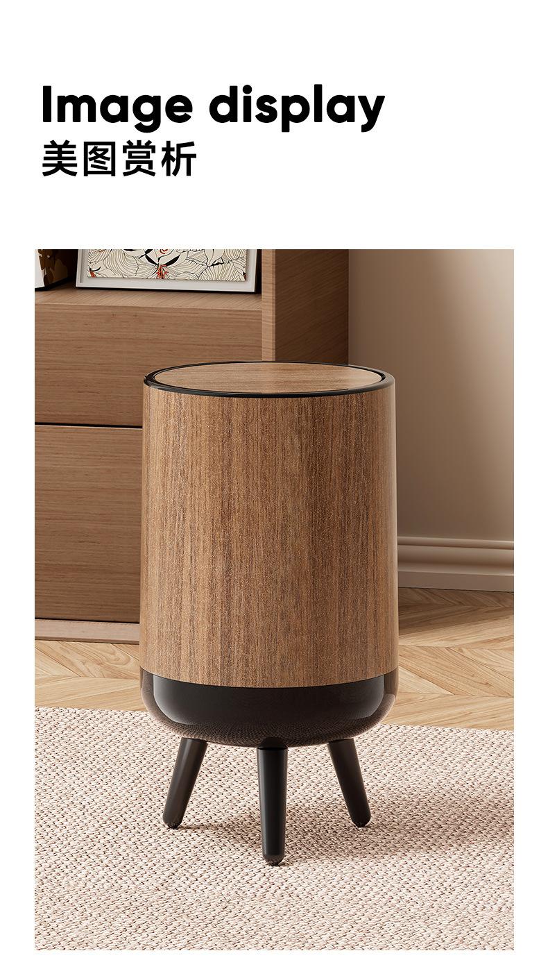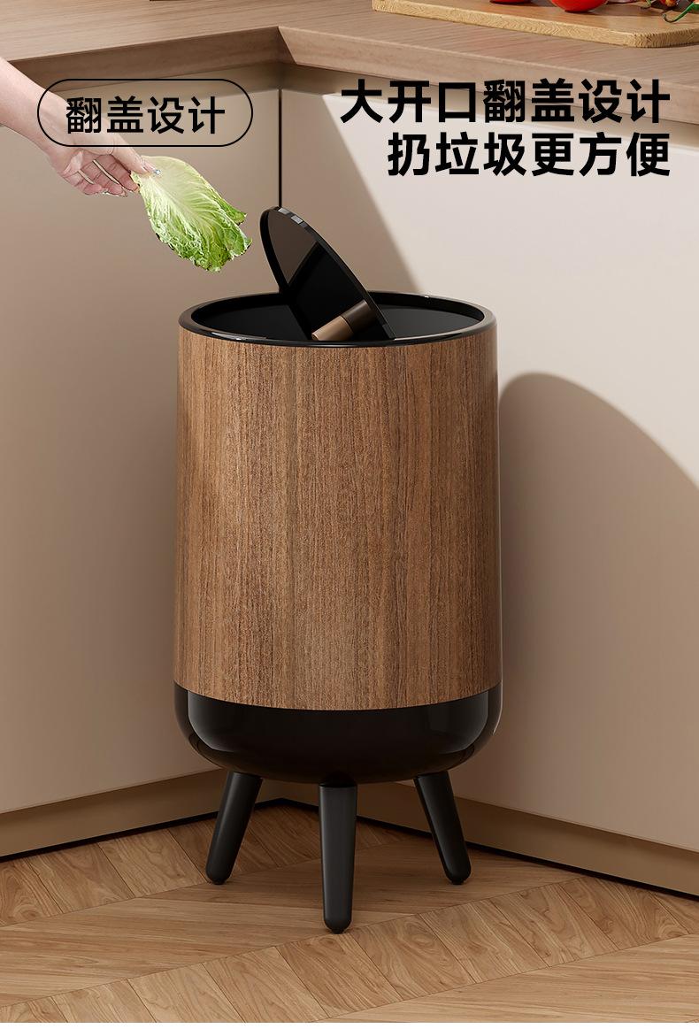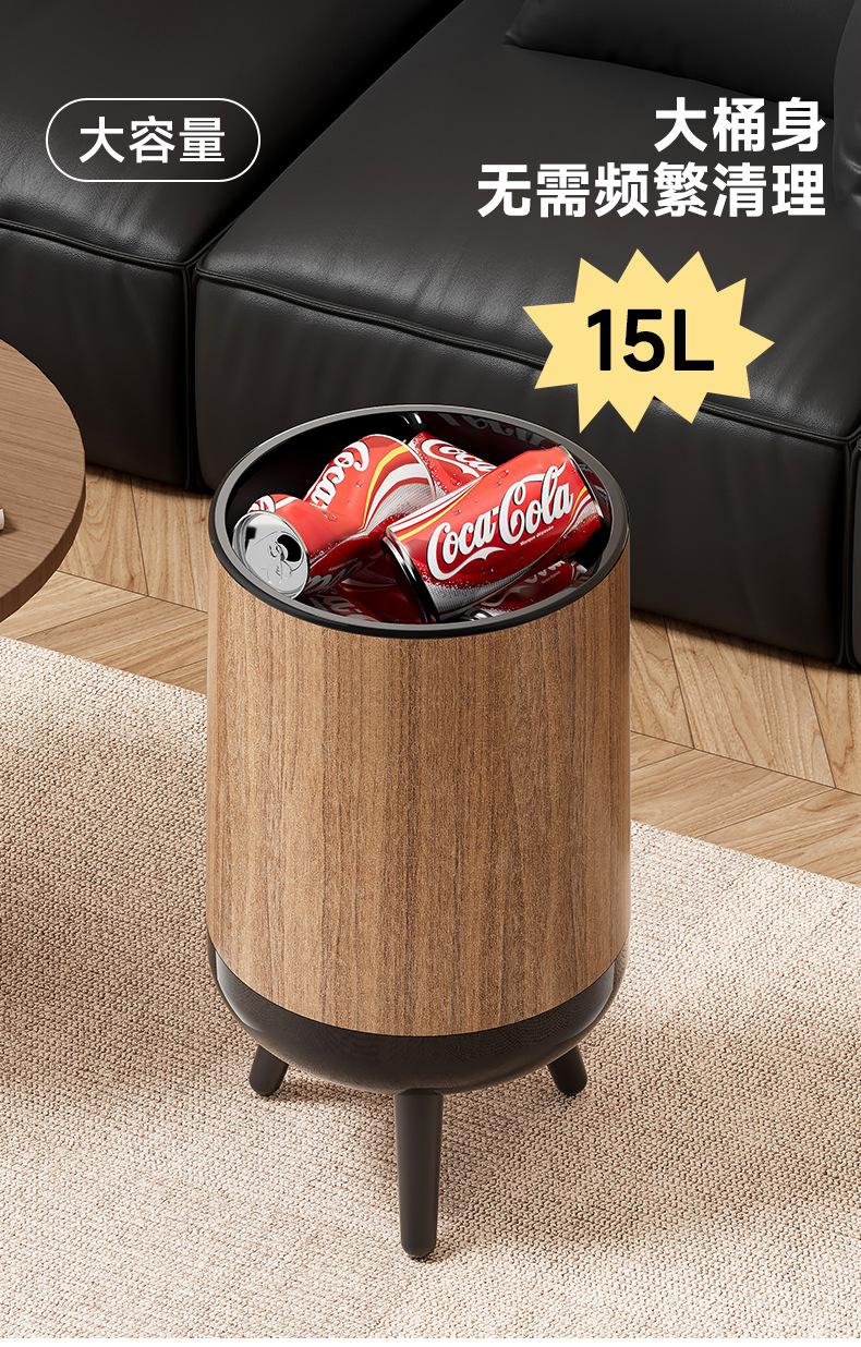 Bote de Basura con Textura de Madera para Uso Doméstico, Alta Gama de Gran Capacidad para Sala de Estar, Cocina, Baño, No Requiere Agacharse, con Tapa