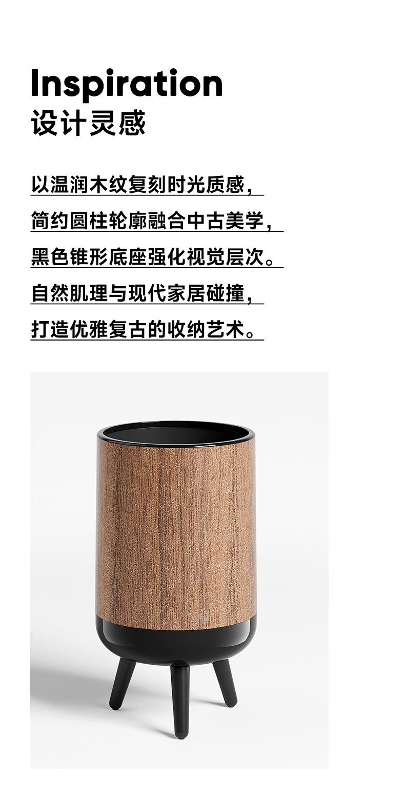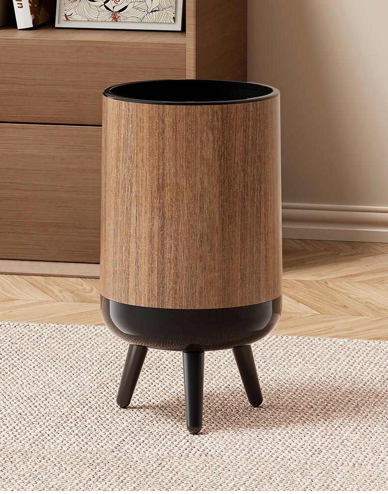 Wood grain trash can with legs - no lid