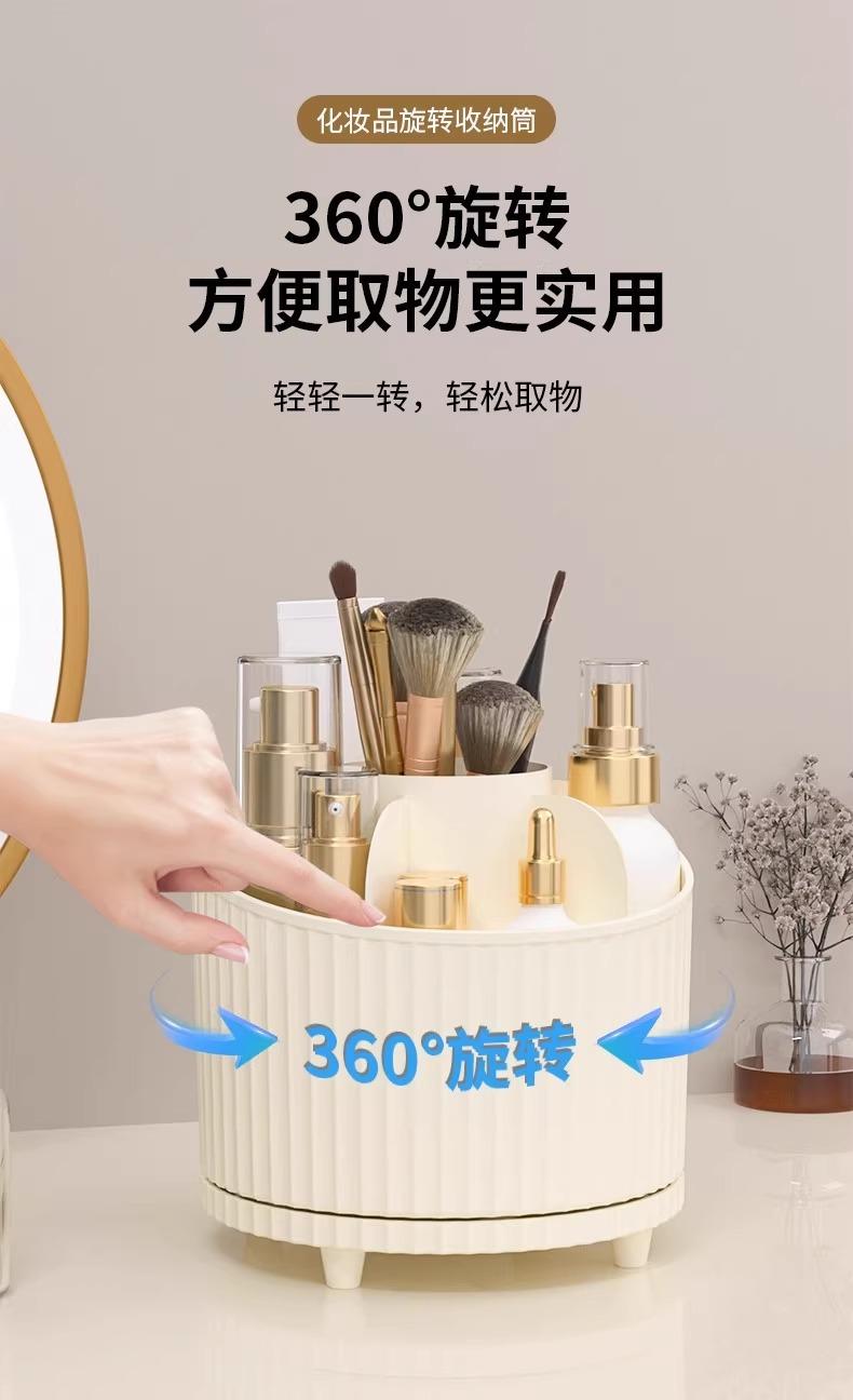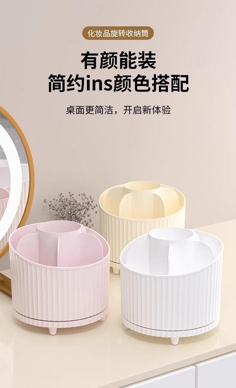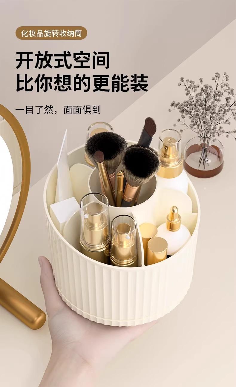 Compra Tubo de almacenamiento giratorio de escritorio para brochas de maquillaje, estante para cosméticos, tocador, caja para brochas de sombra de ojos, lápiz labial, soporte para bolígrafos al por mayor en Joom.pro