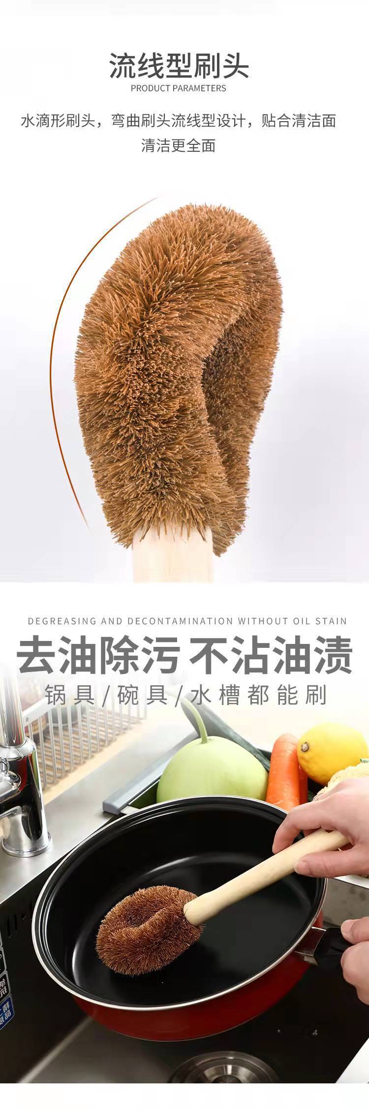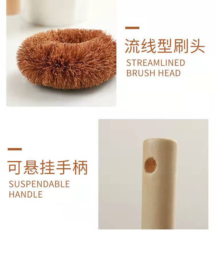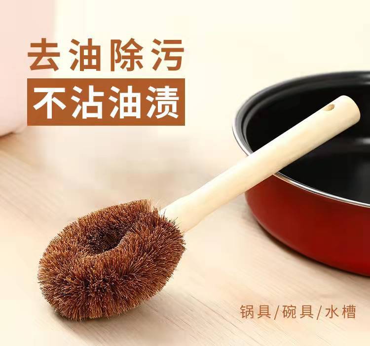 Cepillo de Olla de Coco sin Aceite Cocina Mango de Madera Cepillo para Lavar Sartenes Poderoso Descontaminación Cepillo de Limpieza Cepillo Multifuncional para Lavar Platos Cepillo para Lavar Sartenes
