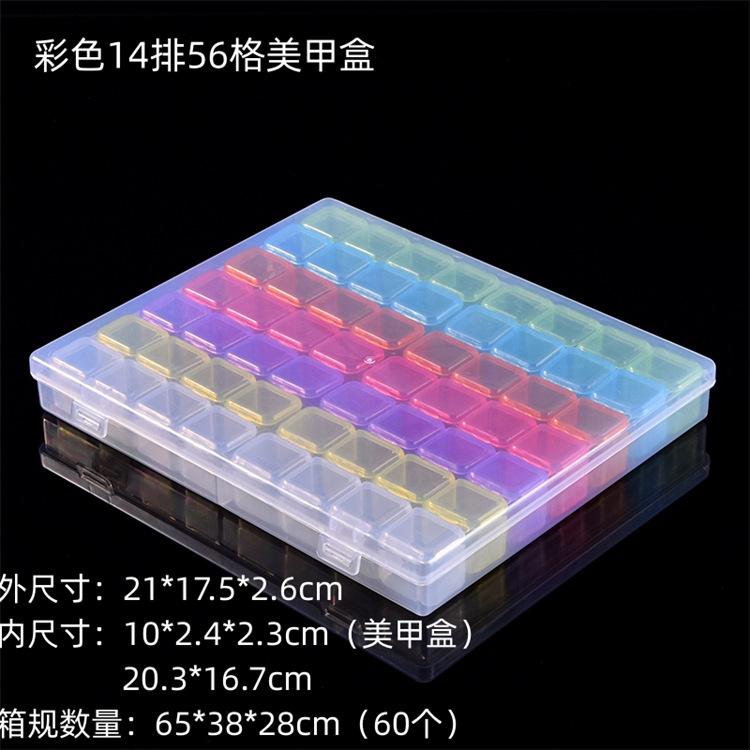 Nombre del producto:Caja de arte de uñas colorida de 14 filas y 56 compartimentos |