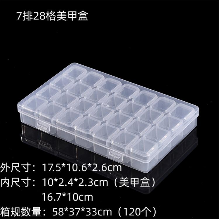 Nombre del producto:Caja para arte de uñas de 7 filas y 28 compartimentos Embalaje: bolsa opp separada |
