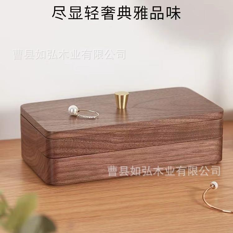 Caja de Joyería de Nogal Caja de Almacenamiento de Joyas para Aretes Caja de Joyería Creativa de Doble Capa Collar Anillo Caja de Exhibición de Madera Maciza