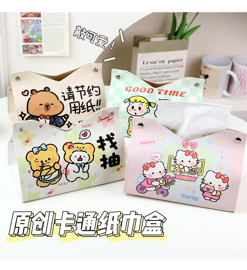 Lindo Dibujo Animado Caja de Pañuelos Hogar Sala de Estar Dormitorio Cuero Caja de Papel Bolsa de Almacenamiento Multifuncional Caja de Papel Servilleta
