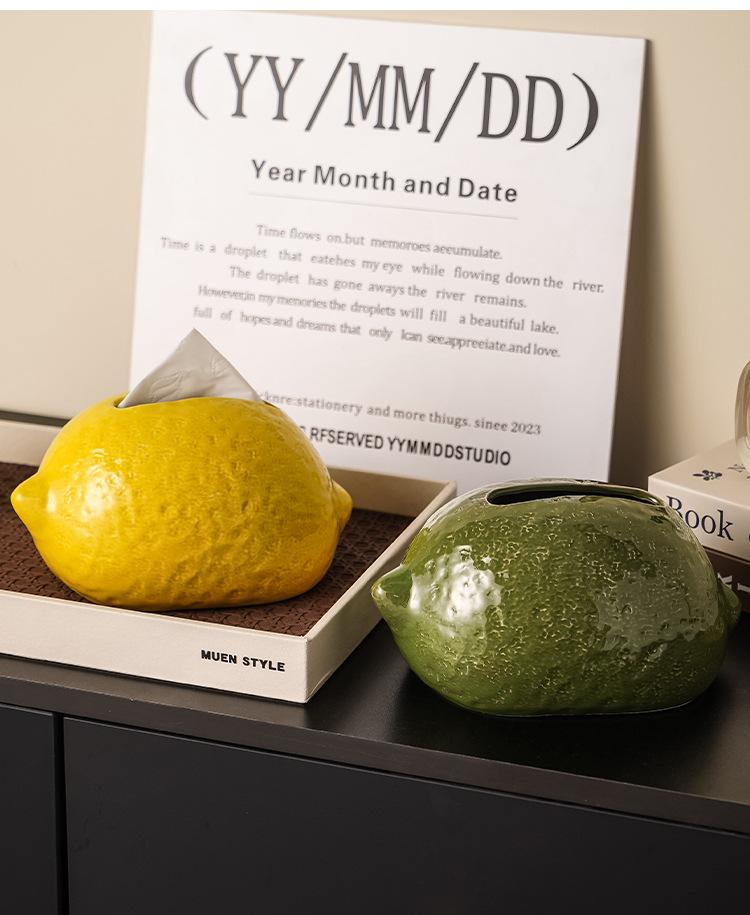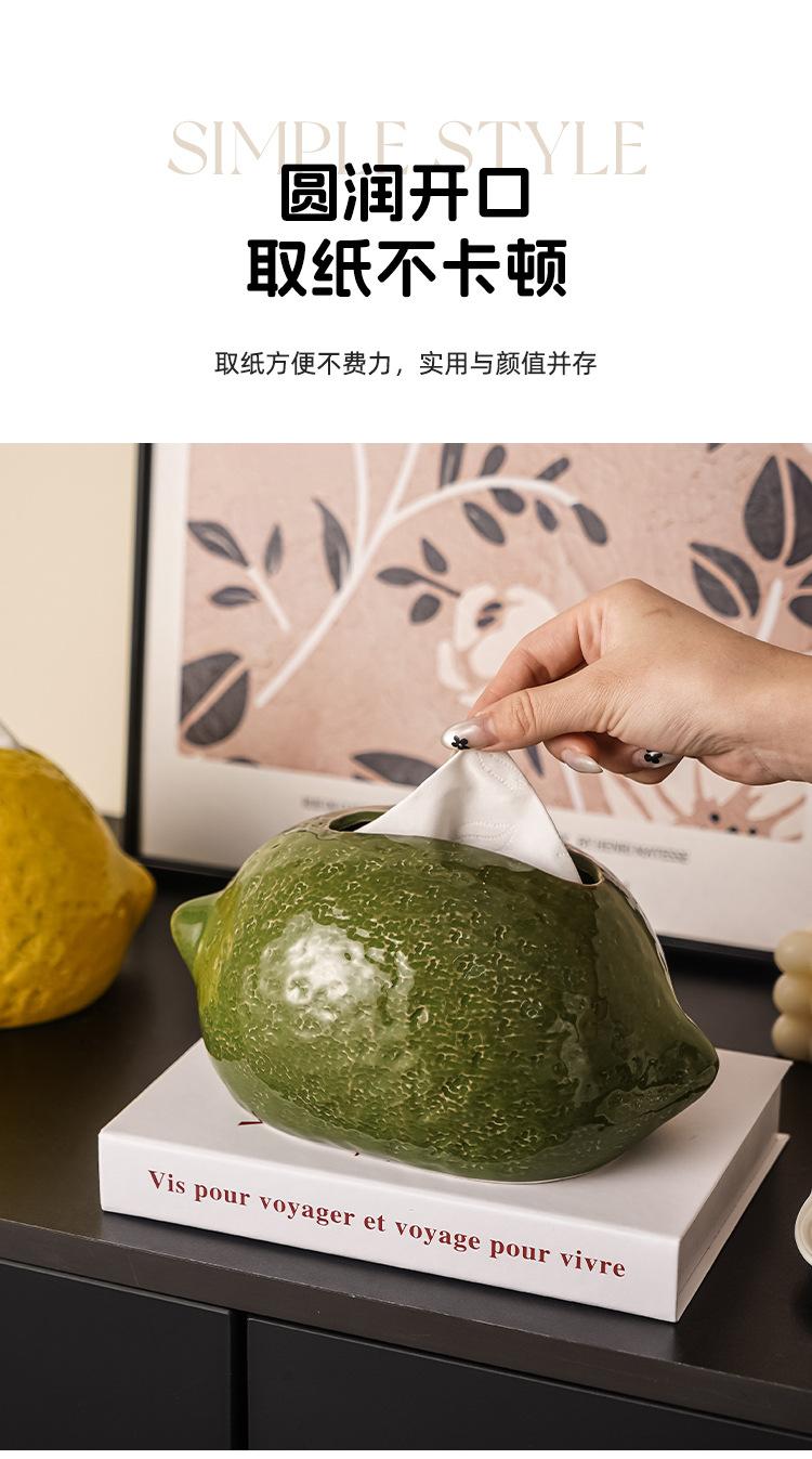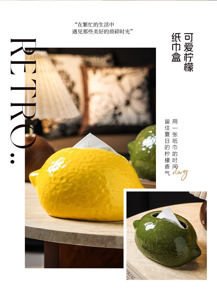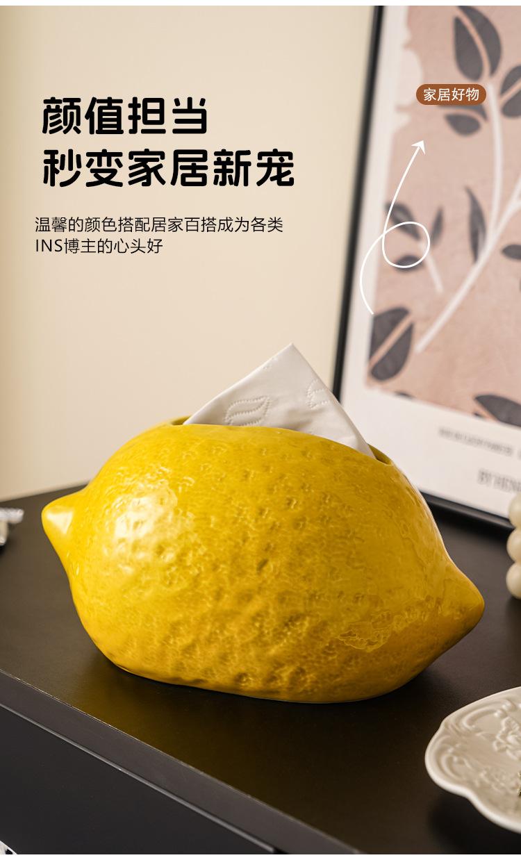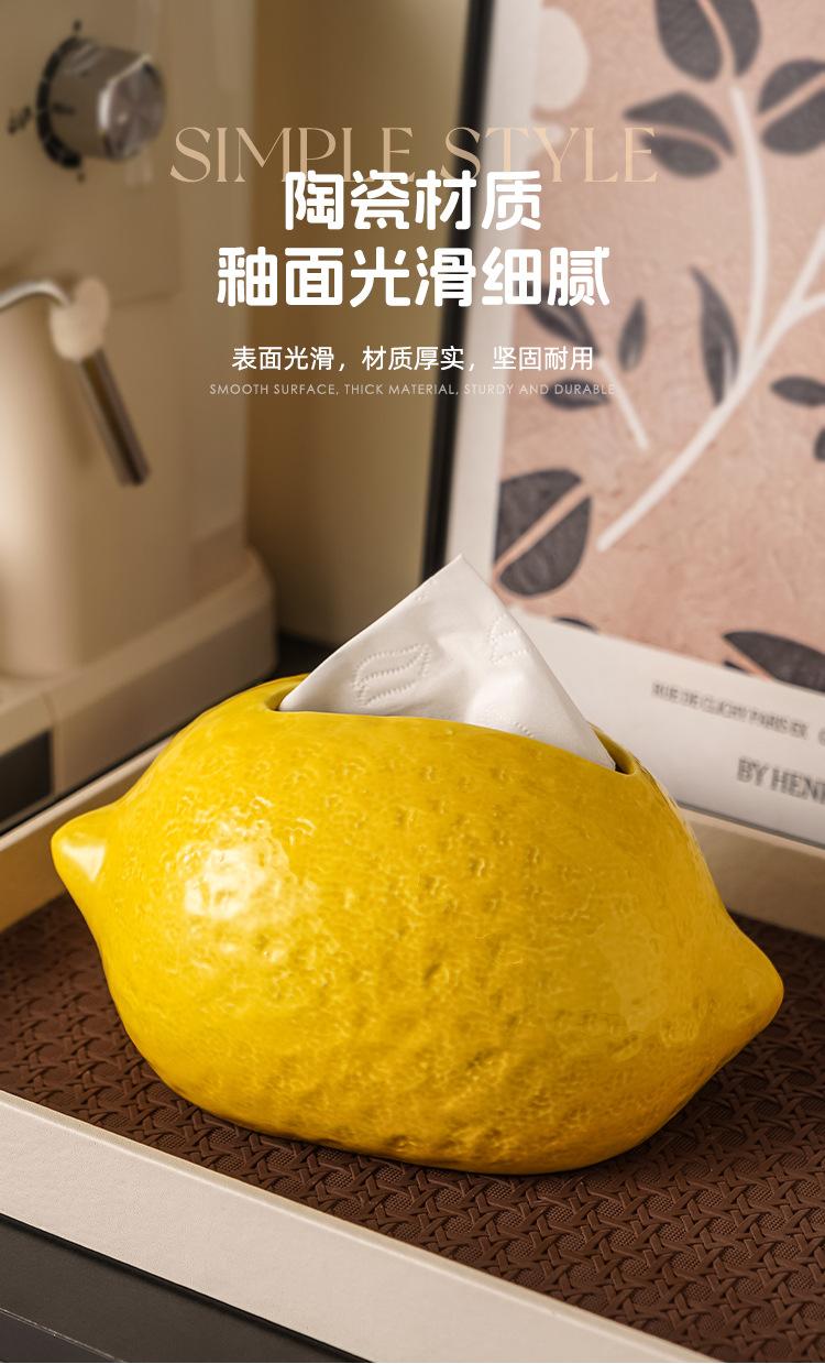Caja de Pañuelos de Cerámica de Limón de Lujo Ligero Creativo Diseño Estilo Nórdico Sala de Estar para el Hogar Caja de Pañuelos Regalo de Inauguración Venta al por Mayor
