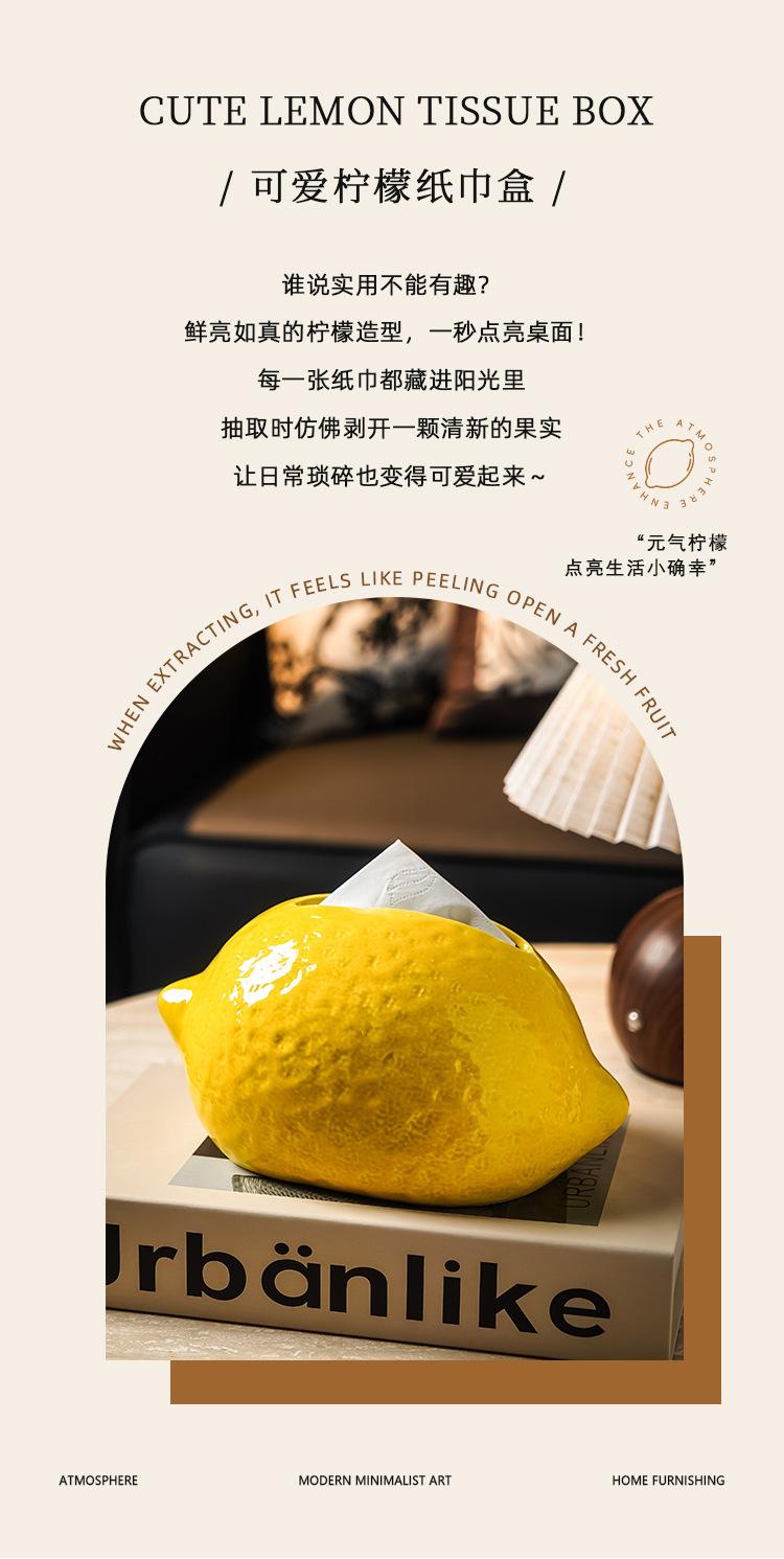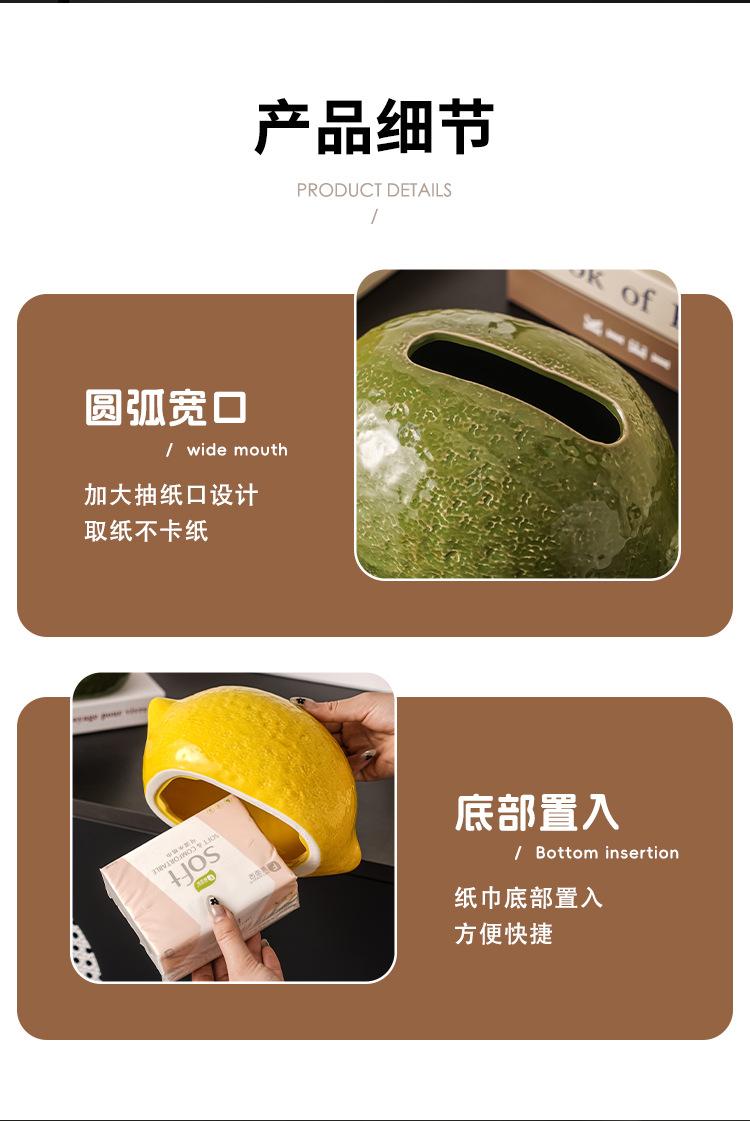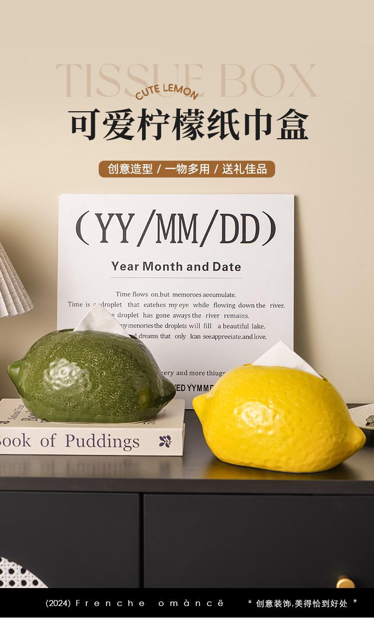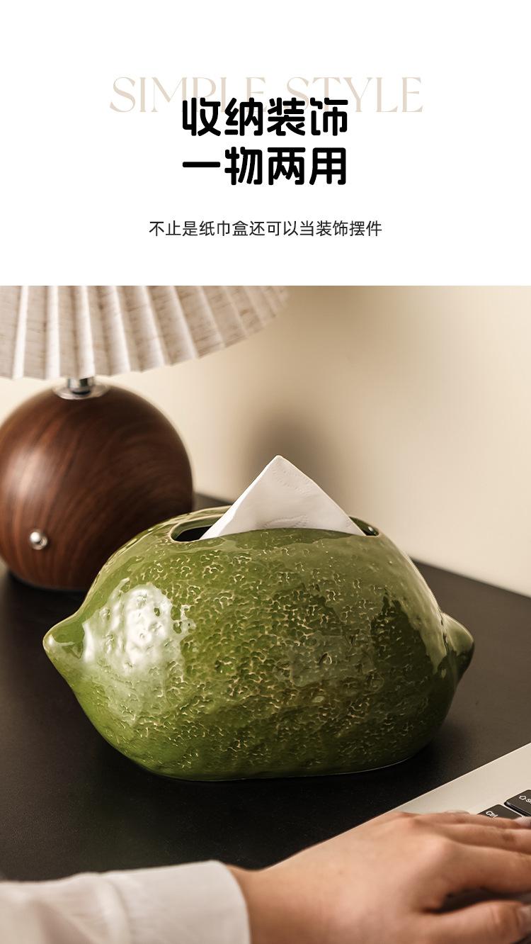 Caja de Pañuelos de Cerámica de Limón de Lujo Ligero Creativo Diseño Estilo Nórdico Sala de Estar para el Hogar Caja de Pañuelos Regalo de Inauguración Venta al por Mayor