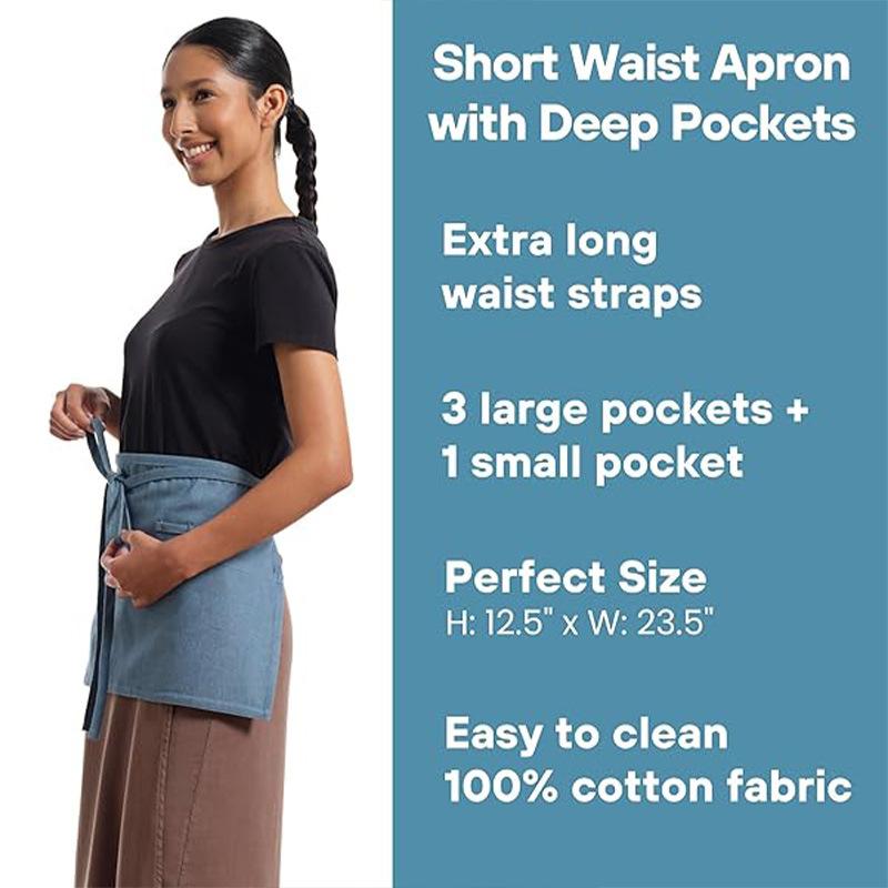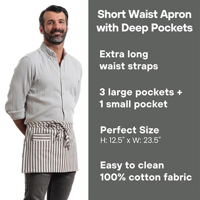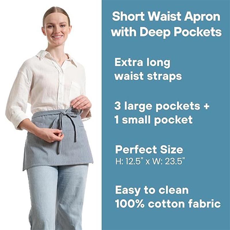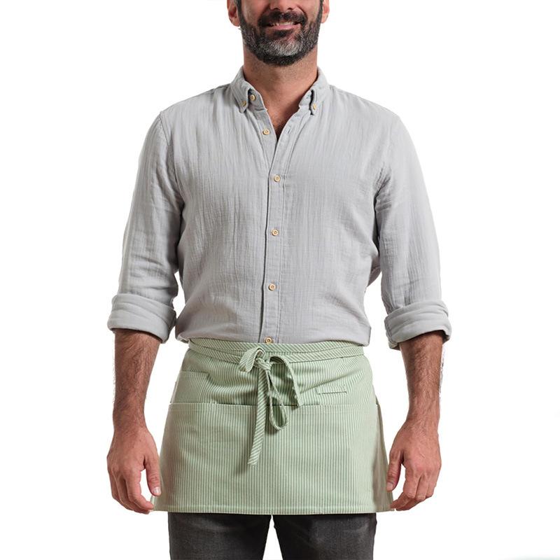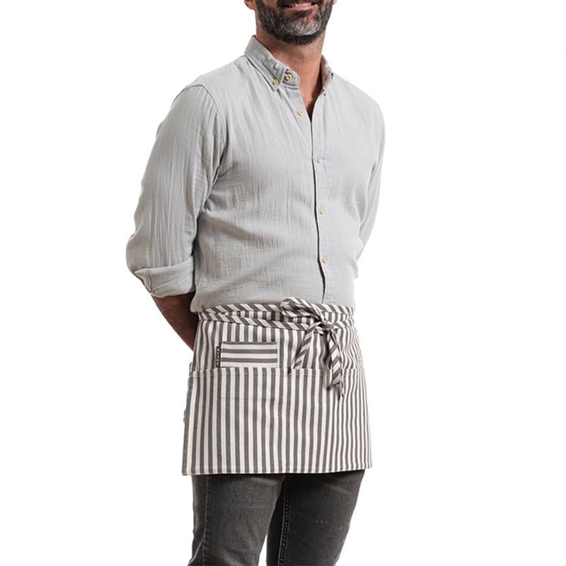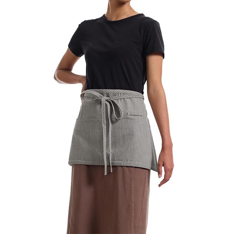 Delantal de Restaurante Transfronterizo Medio Delantal de Cintura Unisex para Hornear Uso Doméstico Delantal Casual de Rayas a la Moda Logotipo Personalizado