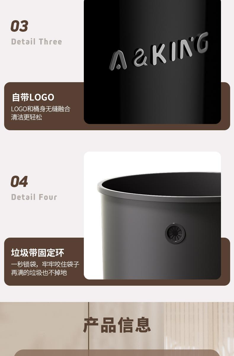 Bote de Basura Doméstico de Gama Alta con Tapa para Sala de Estar y Cocina, Gran Capacidad, Lujo Accesible, Buena Apariencia, No Agacharse, Tubo Alto