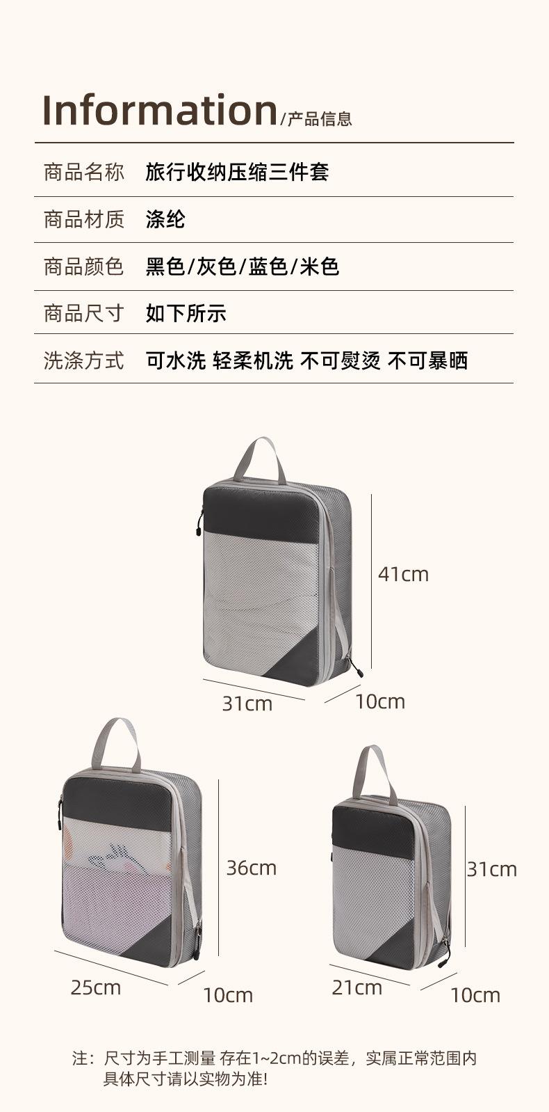 Bolsa de Almacenamiento de Compresión Popular para Viajes Transfronterizos Juego de Tres Piezas Impermeable Maleta Ropa y Zapatos Bolsa de Almacenamiento