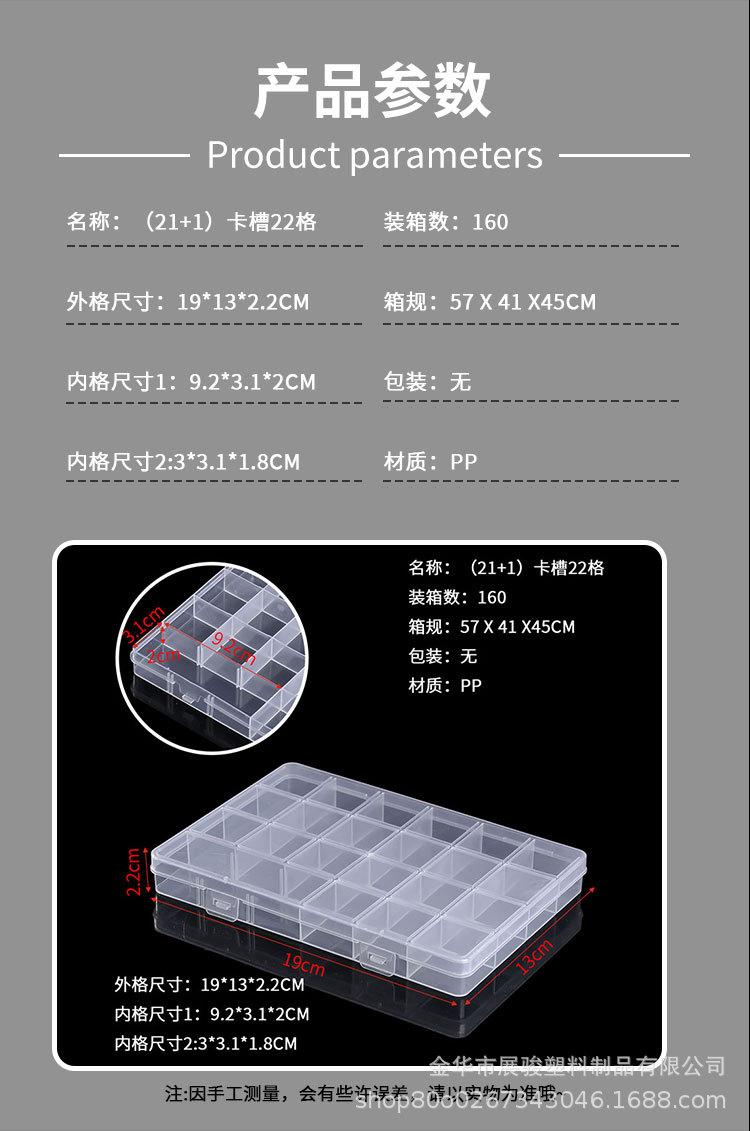 Caja de almacenamiento transparente fija de 22 rejillas Caja de plástico de 24 rejillas Accesorios de joyería DIY Almacenamiento de abalorios Cerámica blanda Caja de joyería