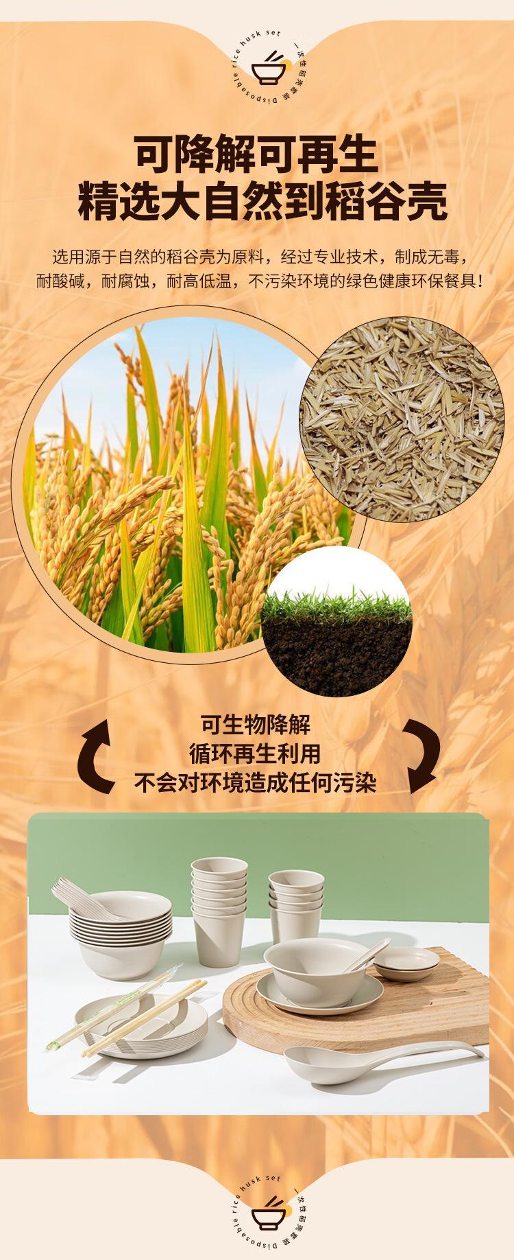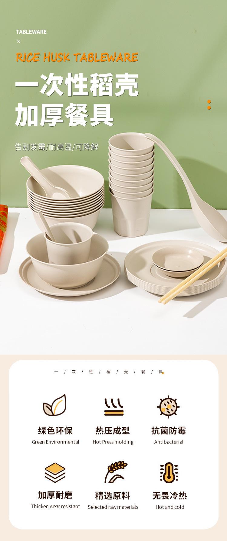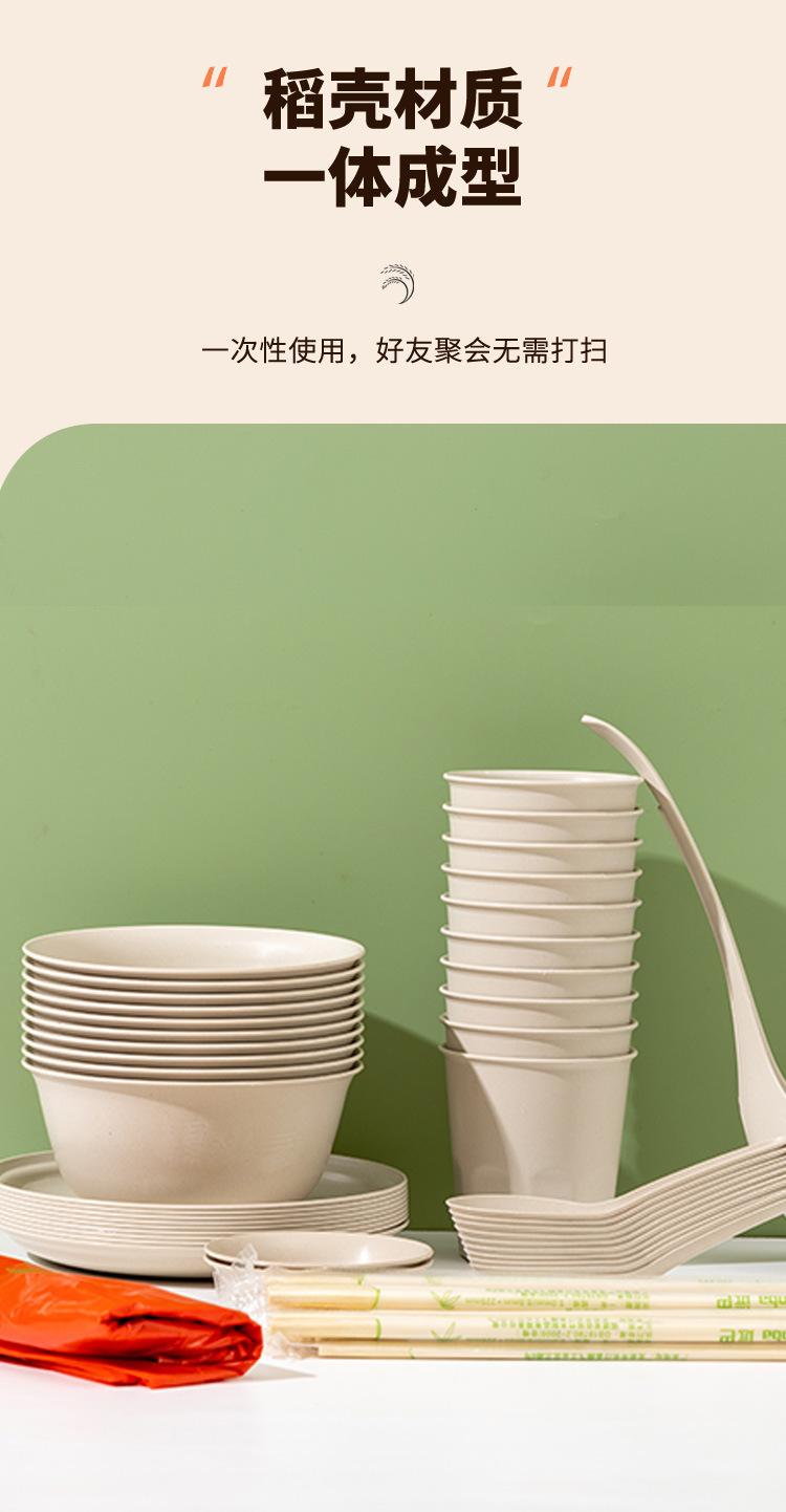 Compra Vajilla desechable de cáscara de arroz, juego de tazón y palillos, cuchara, taza, degradable, grado alimenticio, cena, hogar, picnic para 10 personas al por mayor en Joom.pro