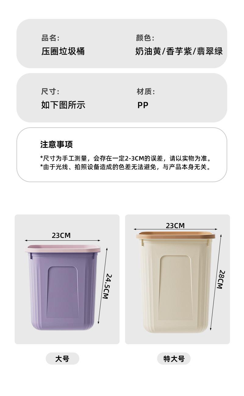 Bote de Basura de Cocina con Anillo de Presión, Contenedor de Almacenamiento de Basura Doméstico de Gran Capacidad y Aspecto Elegante, Cesto de Papel para Sala de Estar, Dormitorio, Baño