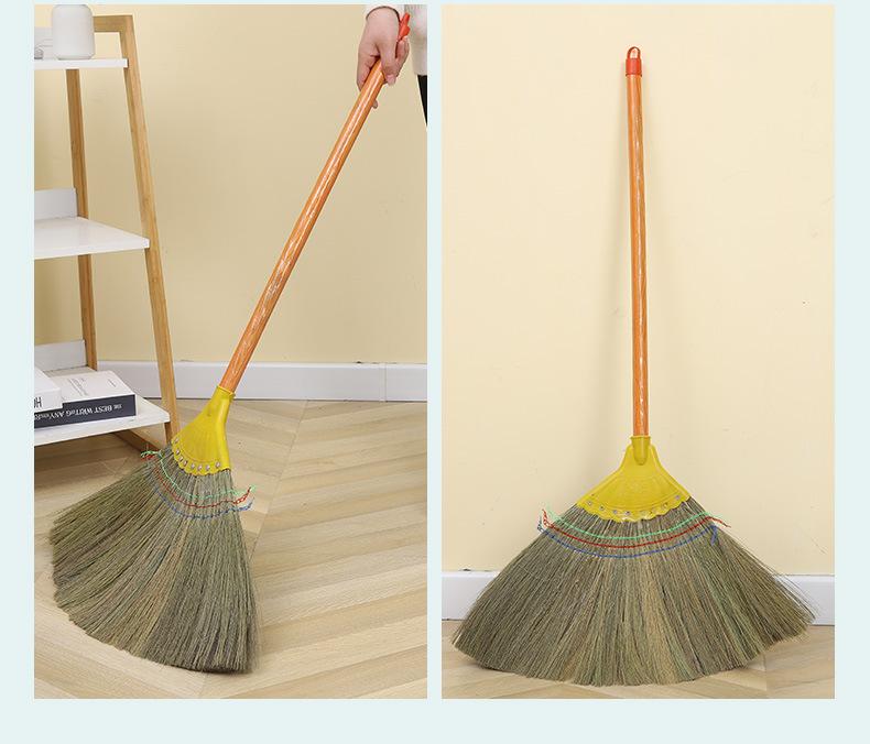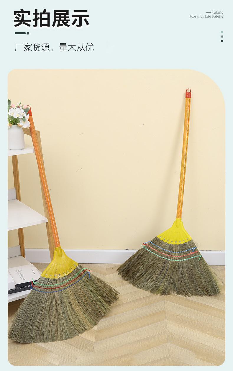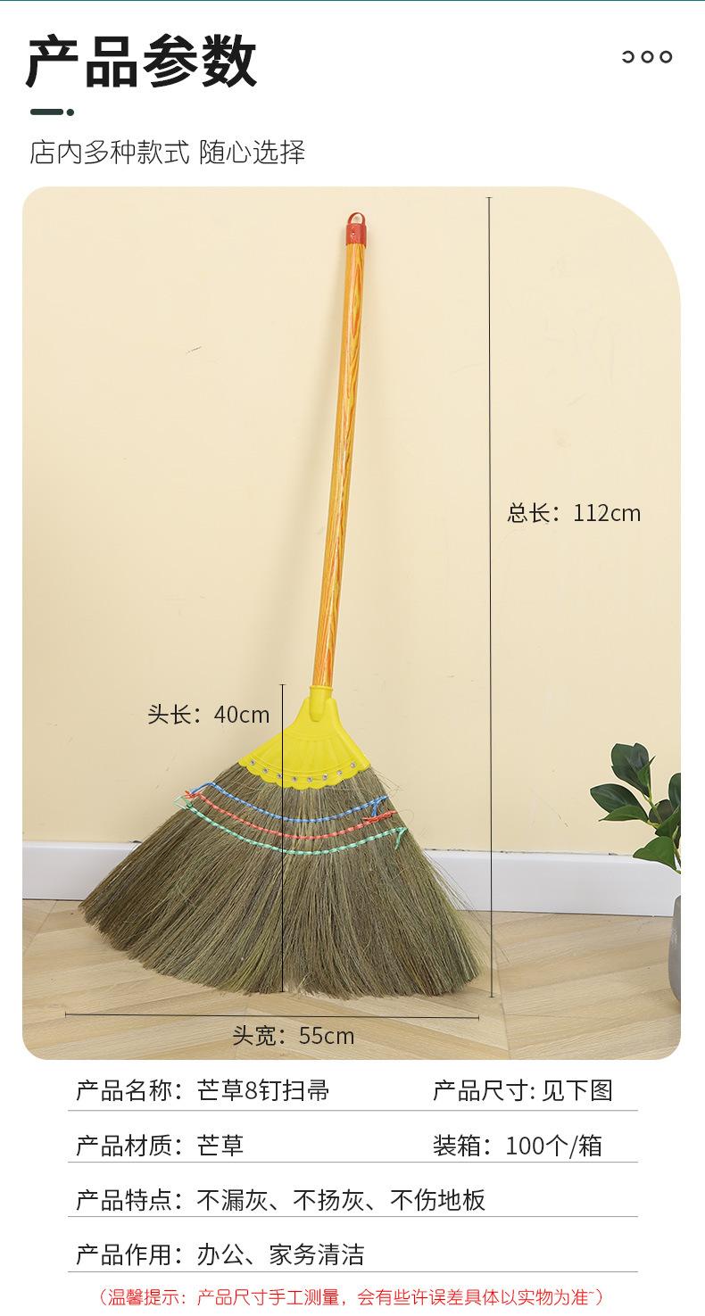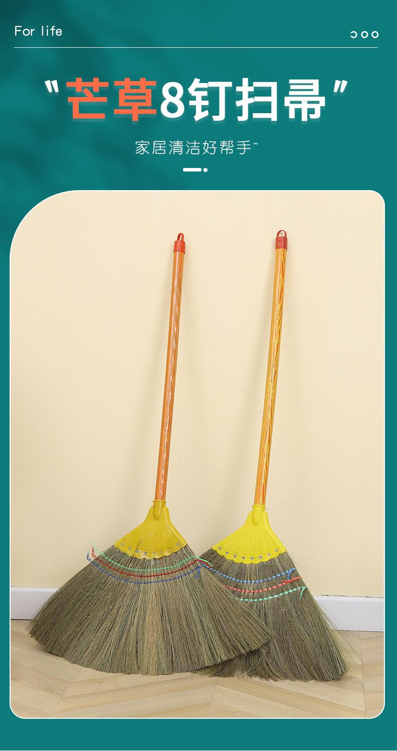 Escoba de Miscanthus 8 clavos cabeza de plástico reforzado hogar escoba de lana suave anchoa palo de madera escoba venta al por mayor