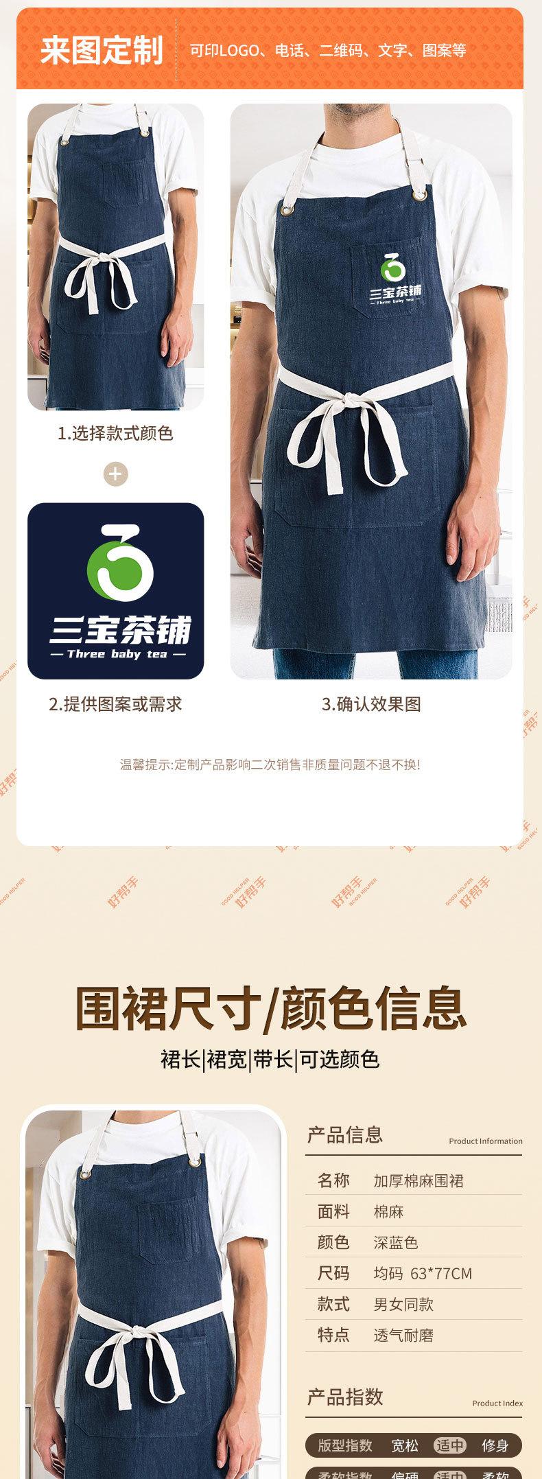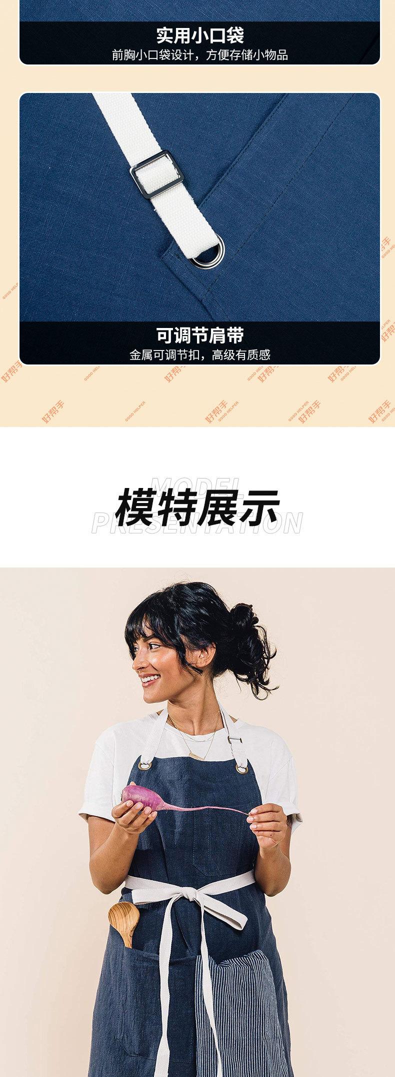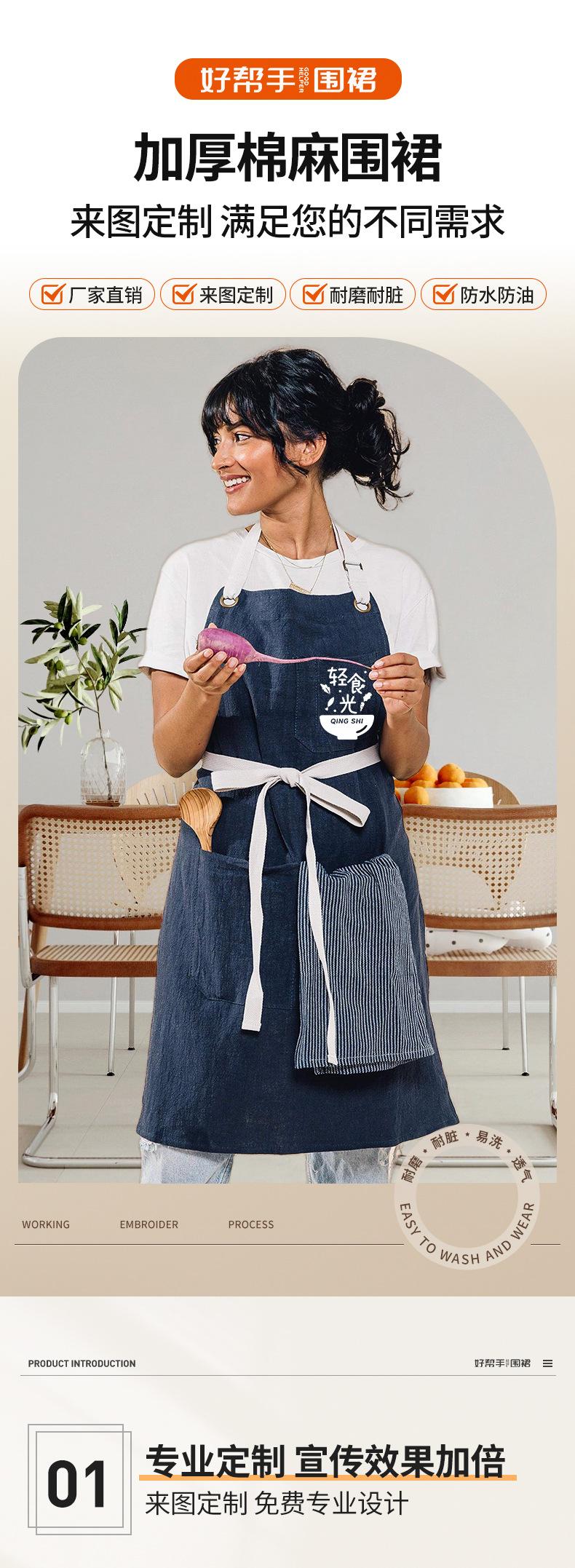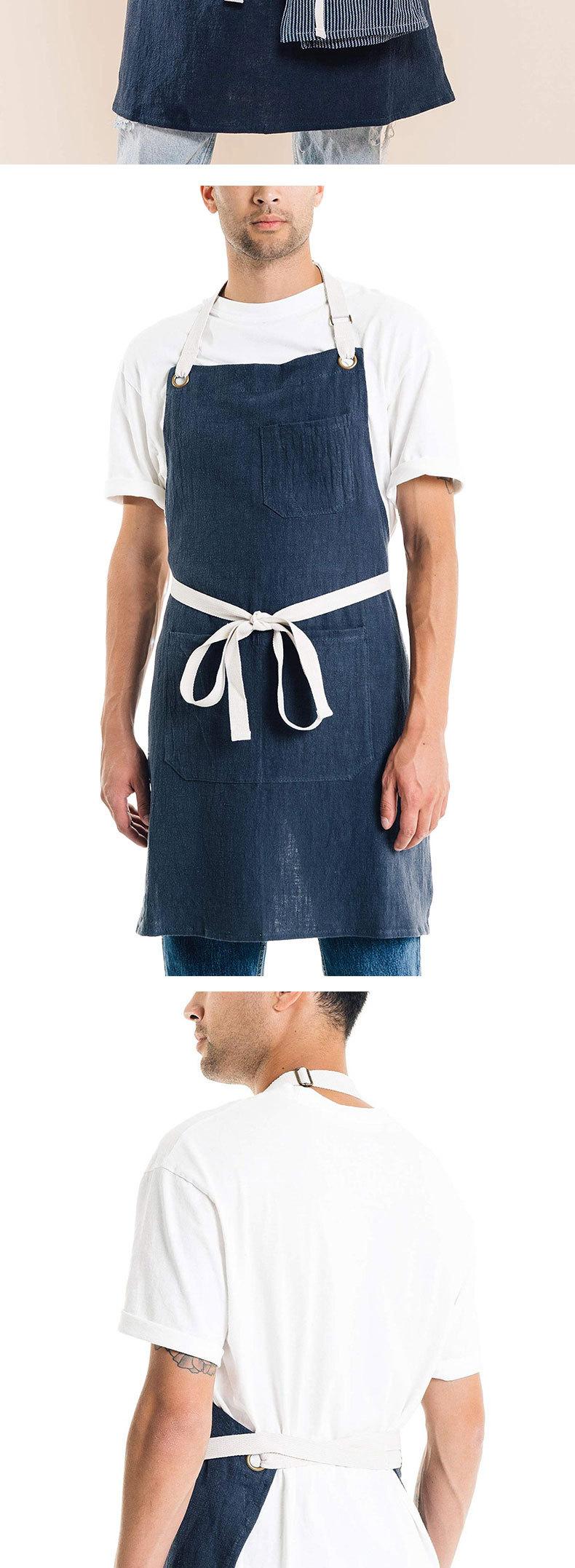Delantal de Algodón Lino para Exportación Transfronteriza Cocina Engrosado Hogar Moda Coreana Simple Estilo Ins Estilo Japonés