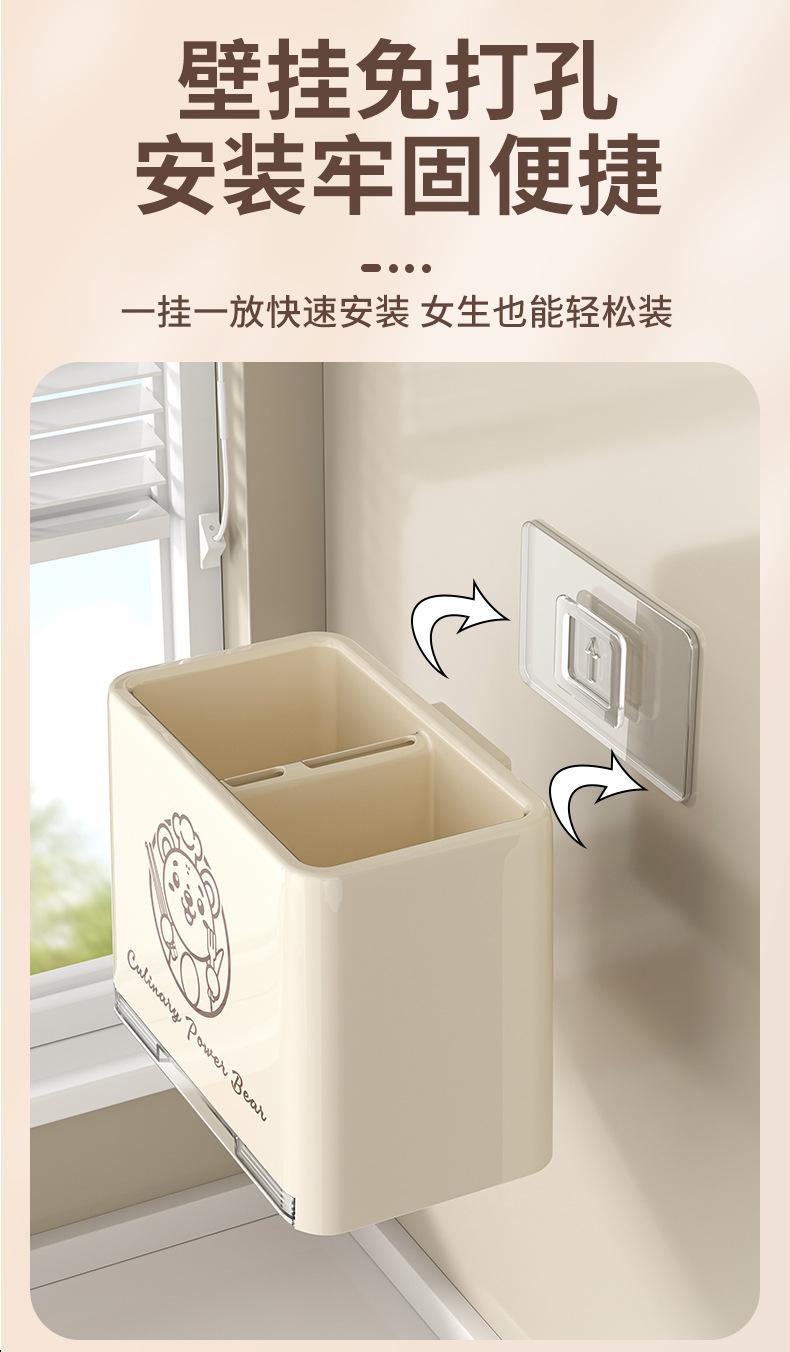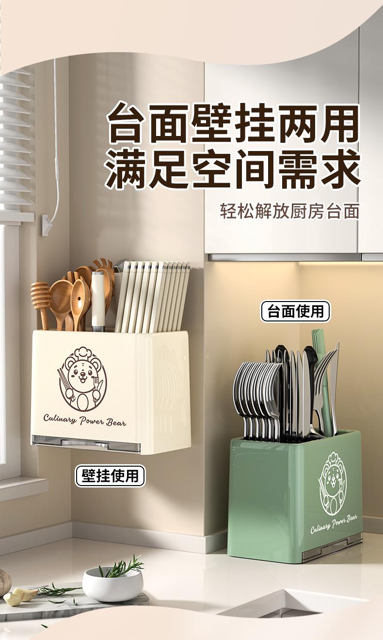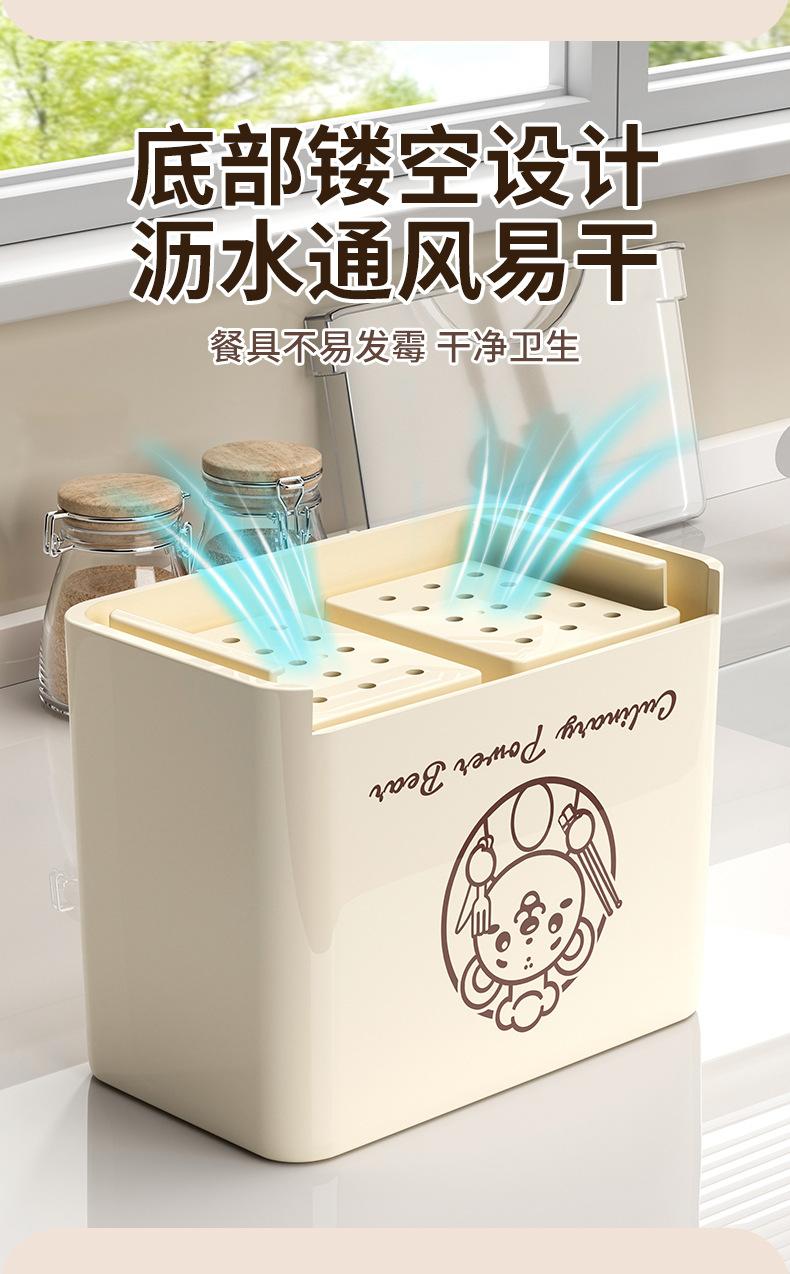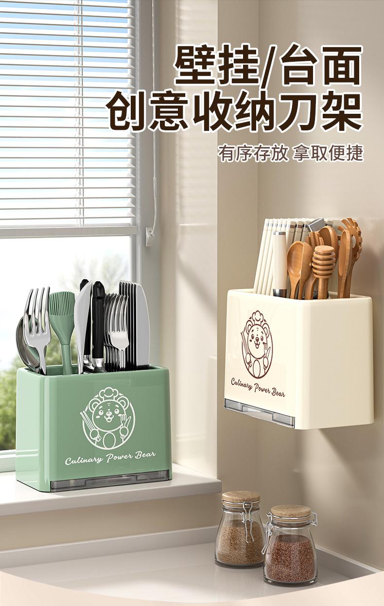Portapalillos de Cocina de Plástico Grueso Transfronterizo, Estante de Almacenamiento, Montado en la Pared, 2 Compartimentos Divididos, Estante de Almacenamiento Estilo Crema para Cubiertos y Cuchillos