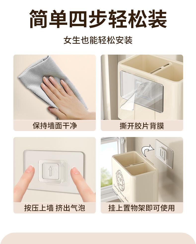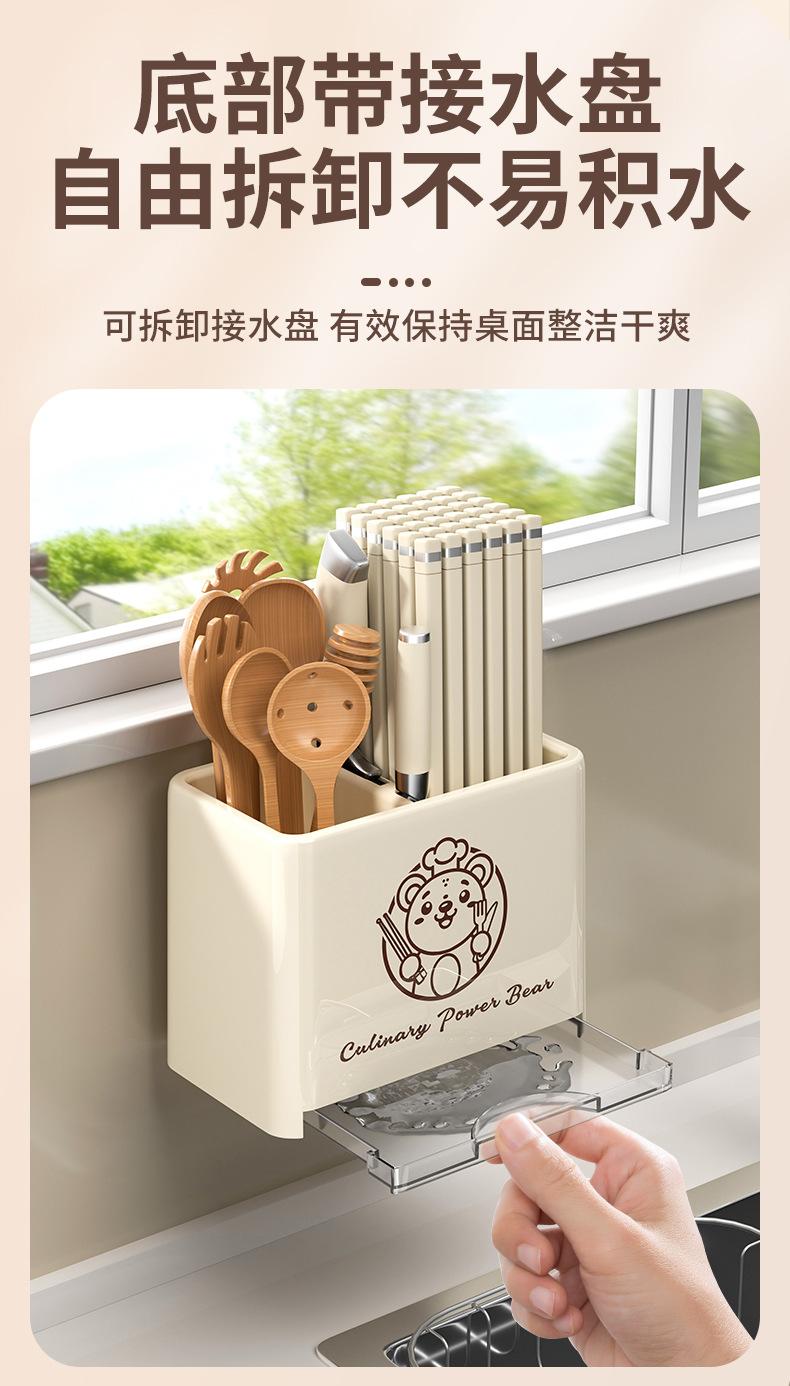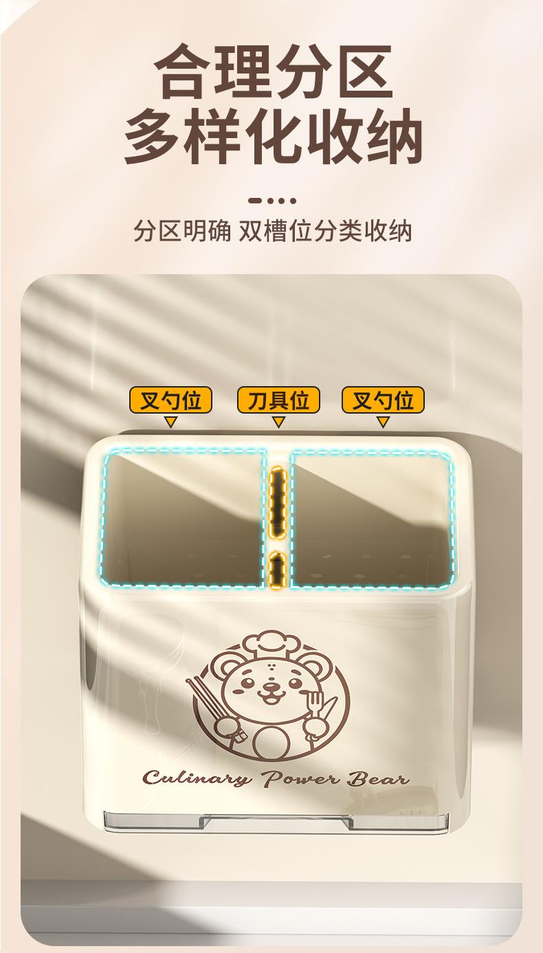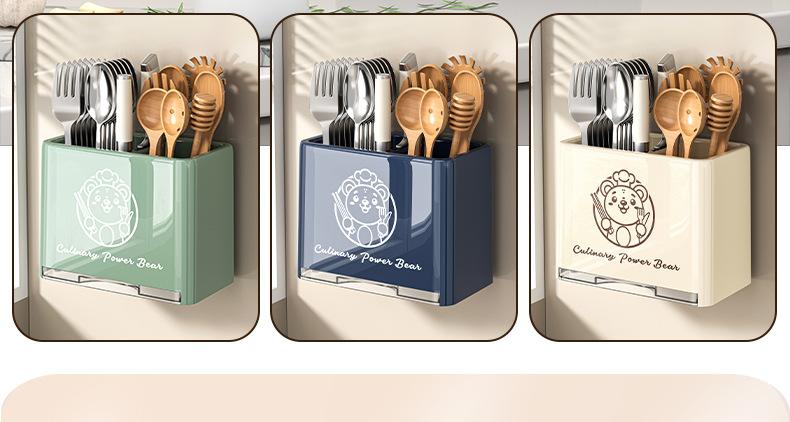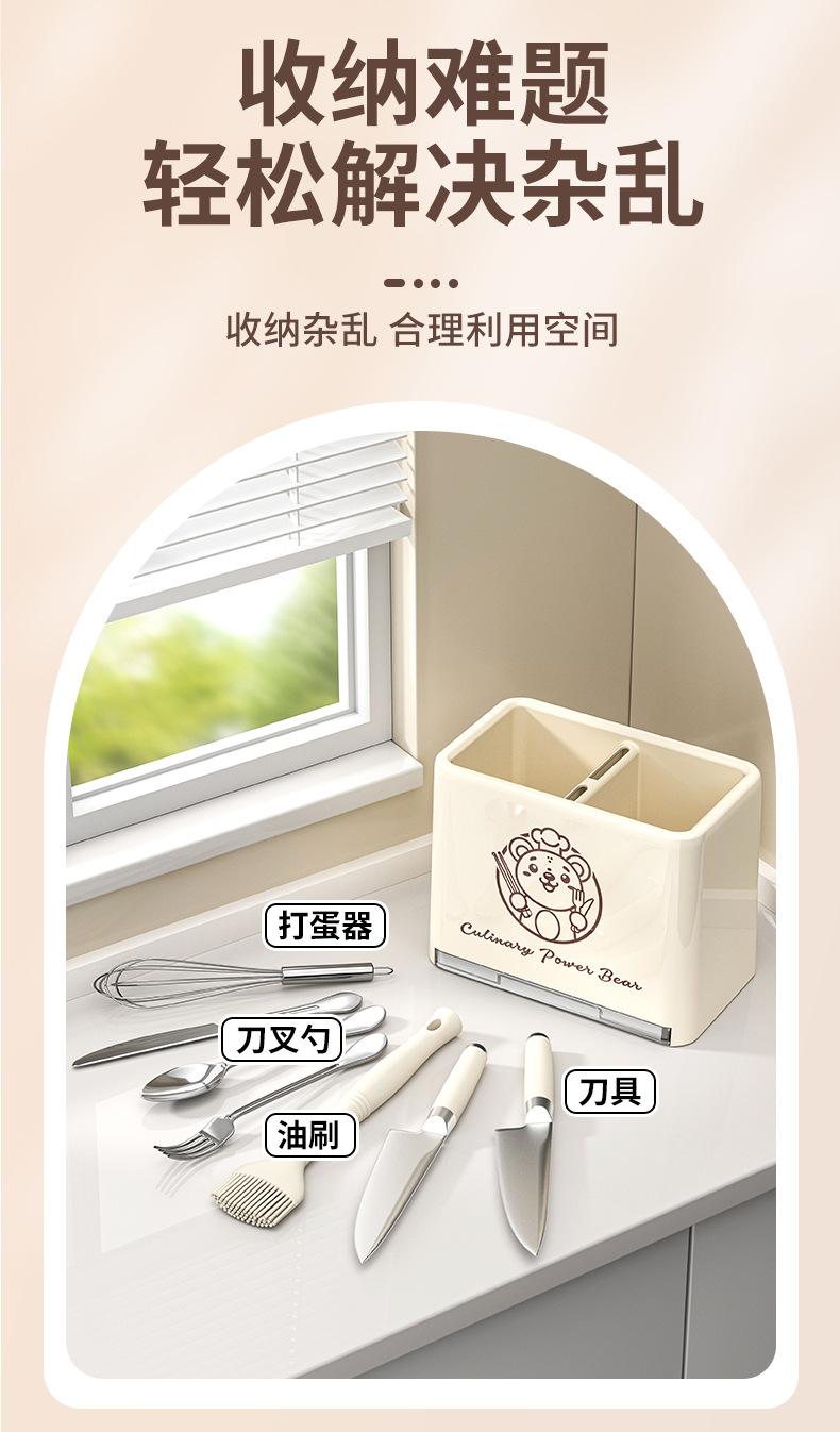Portapalillos de Cocina de Plástico Grueso Transfronterizo, Estante de Almacenamiento, Montado en la Pared, 2 Compartimentos Divididos, Estante de Almacenamiento Estilo Crema para Cubiertos y Cuchillos