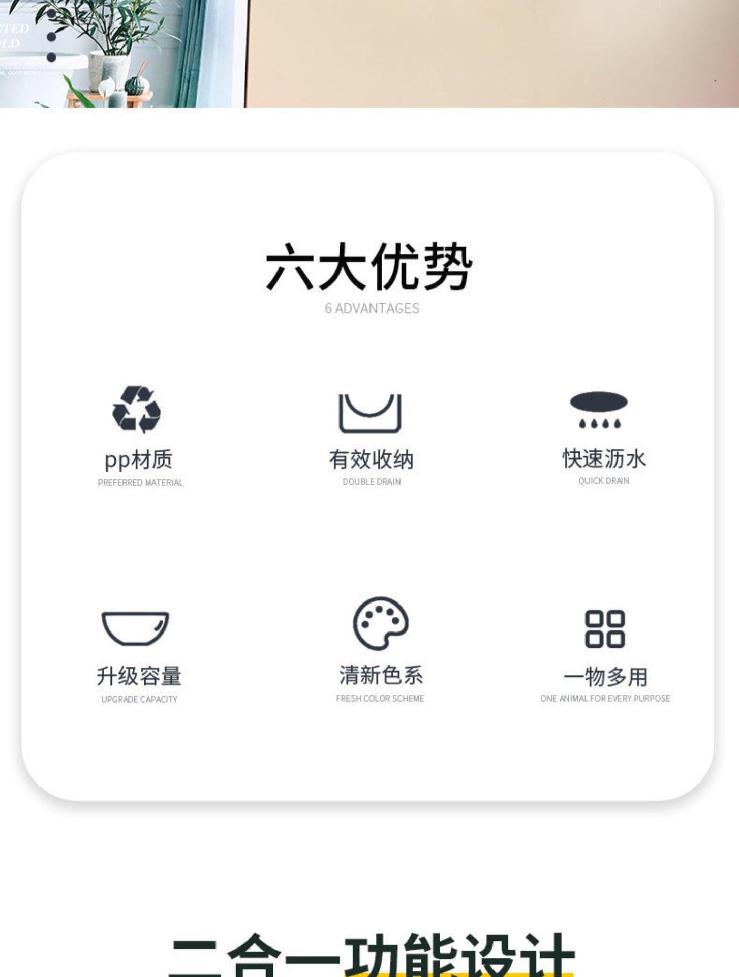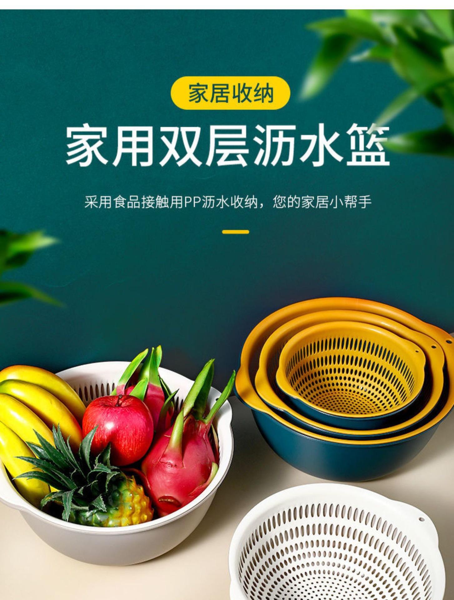 Cesta de Drenaje de Doble Capa Cesta de Plástico para Lavar Verduras para el Hogar Cesta Calada para Lavar Fruta Plato de Fruta Multifuncional Lavabo de Cocina para Lavar Verduras