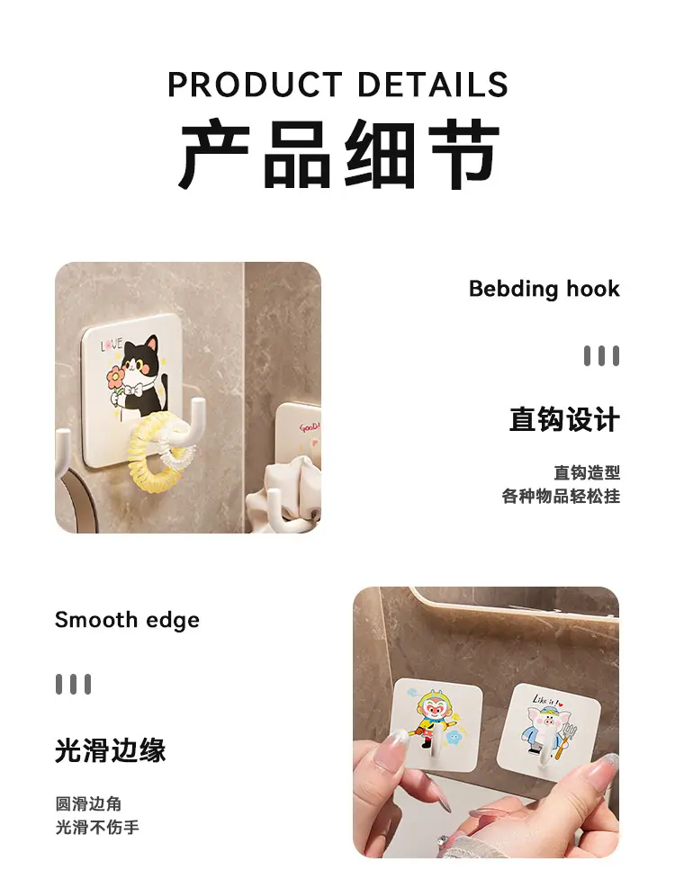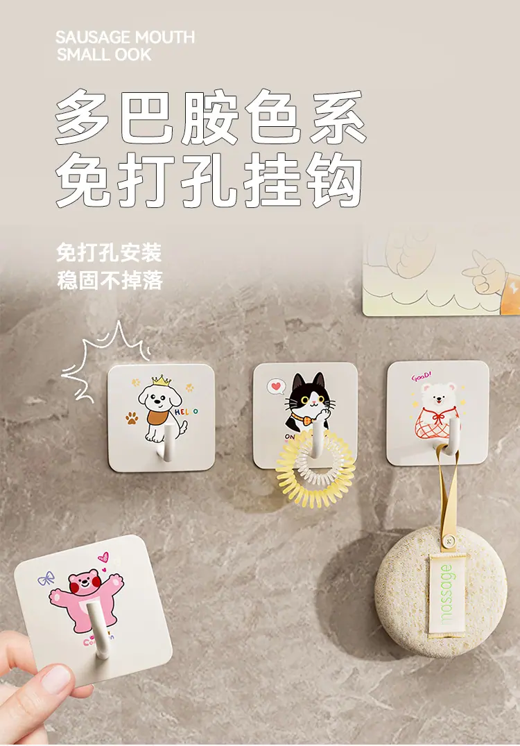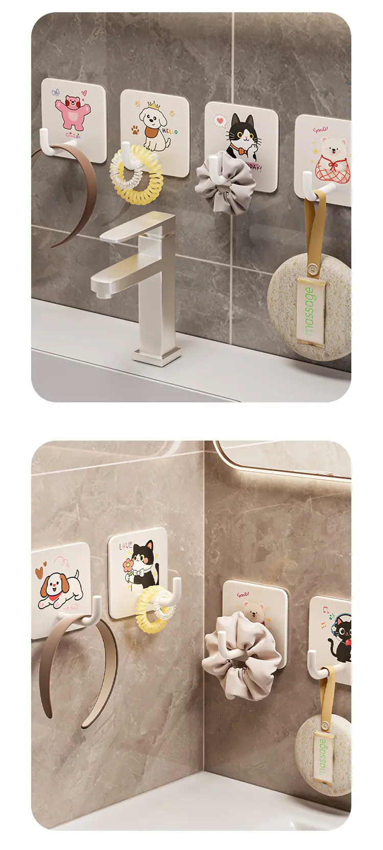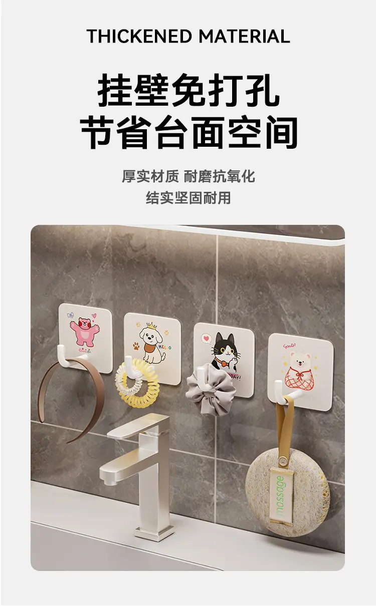 Stainless Steel [Mesh Bag Bear Sticker] Thickened Nail-Free Glue Single Hook