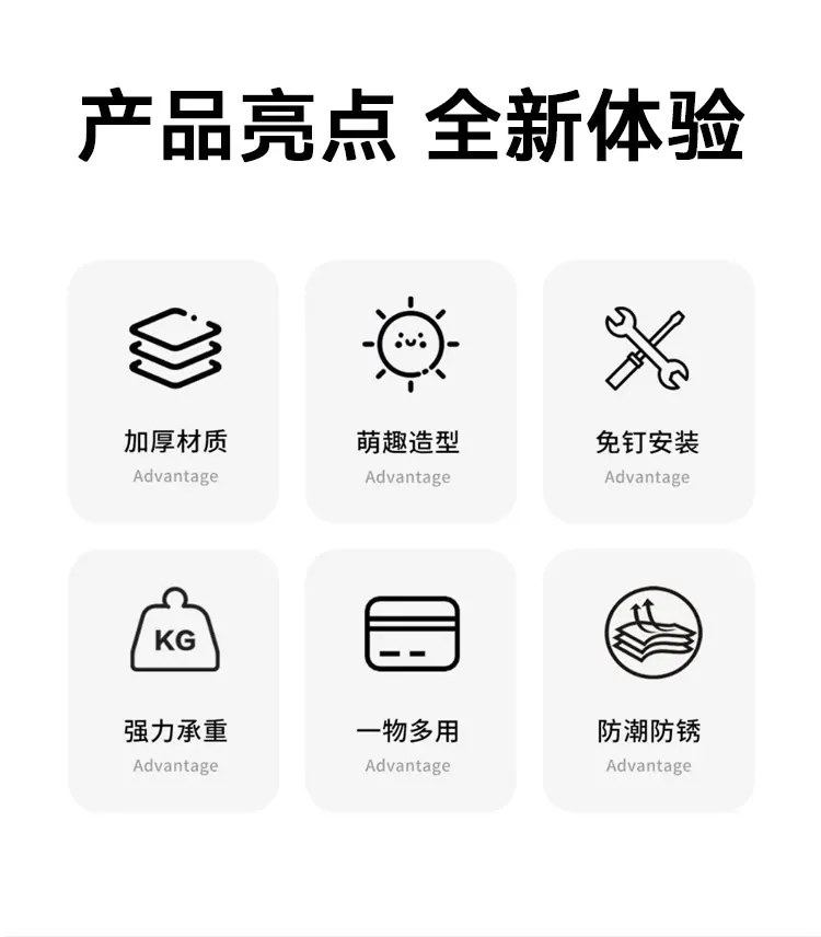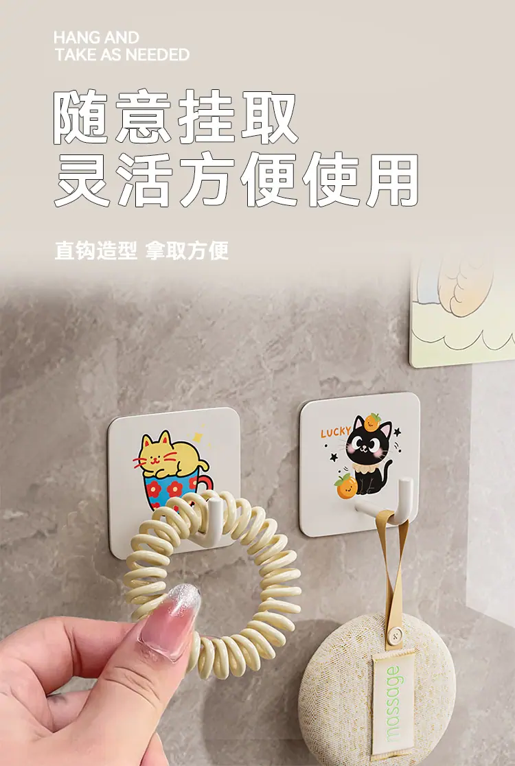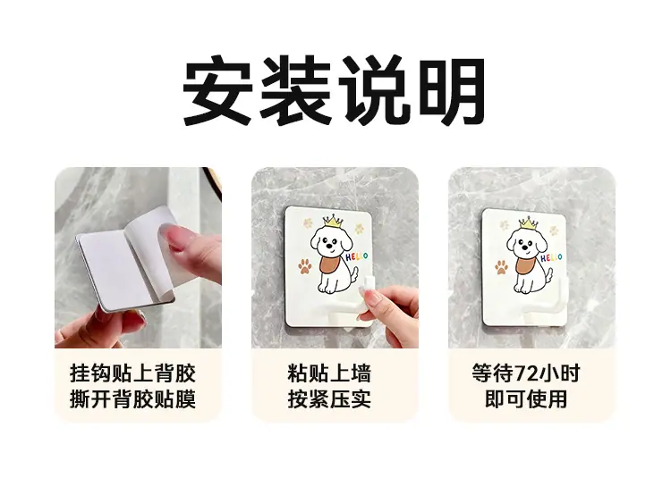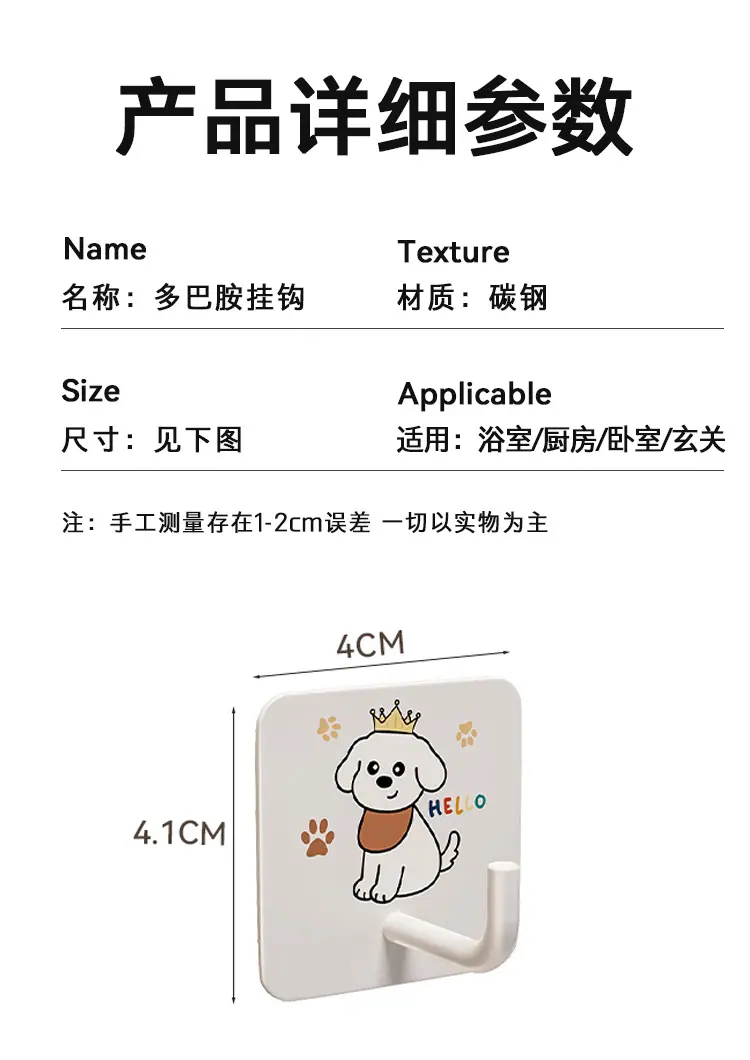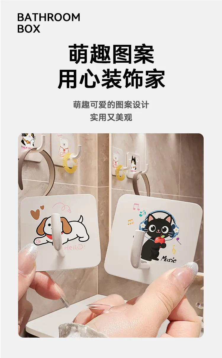 Stainless Steel [Mesh Bag Bear Sticker] Thickened Nail-Free Glue Single Hook