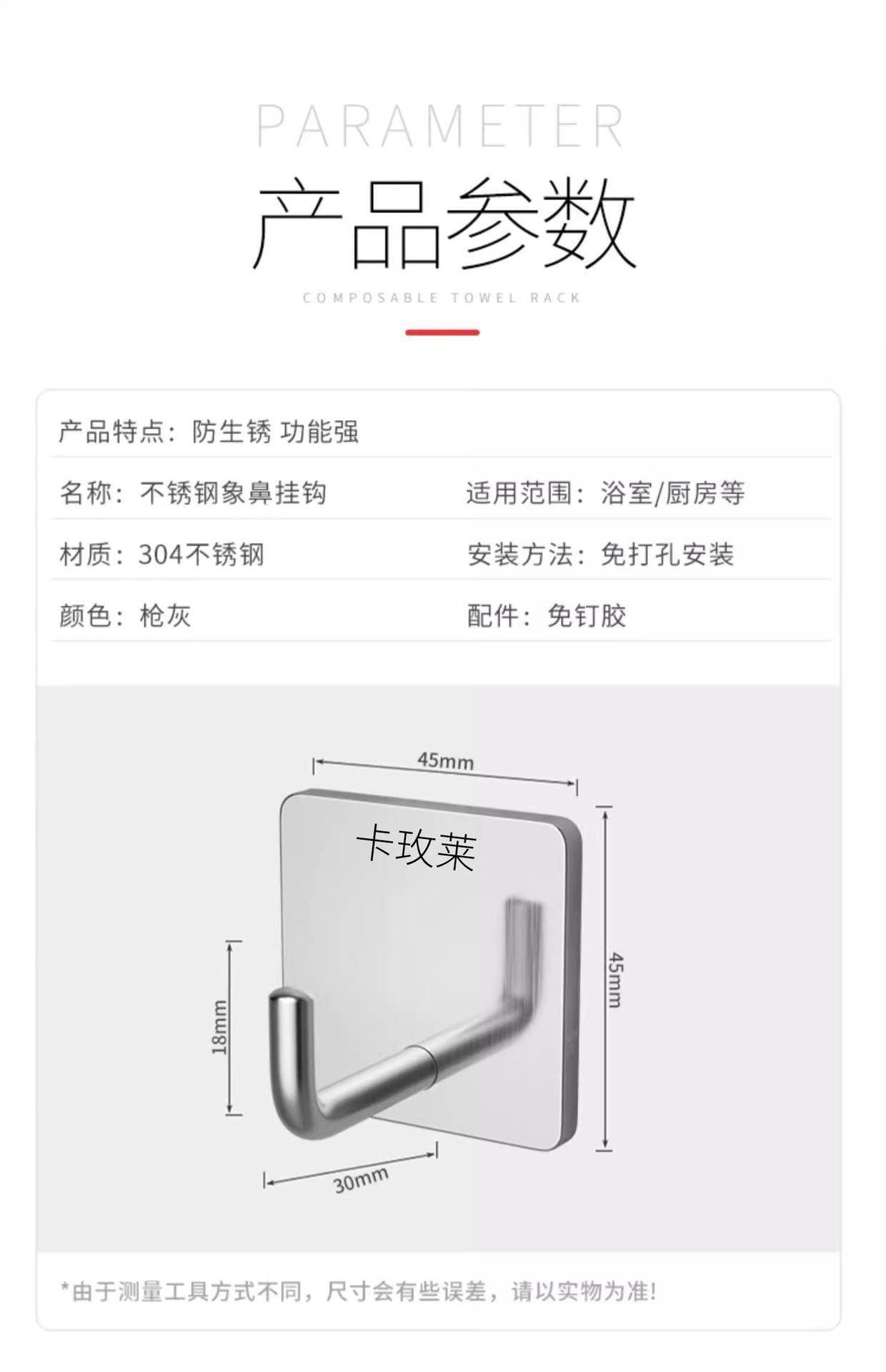 Gray [Carbon Steel Single Hook] Punch-Free Hook + Nail-Free Adhesive