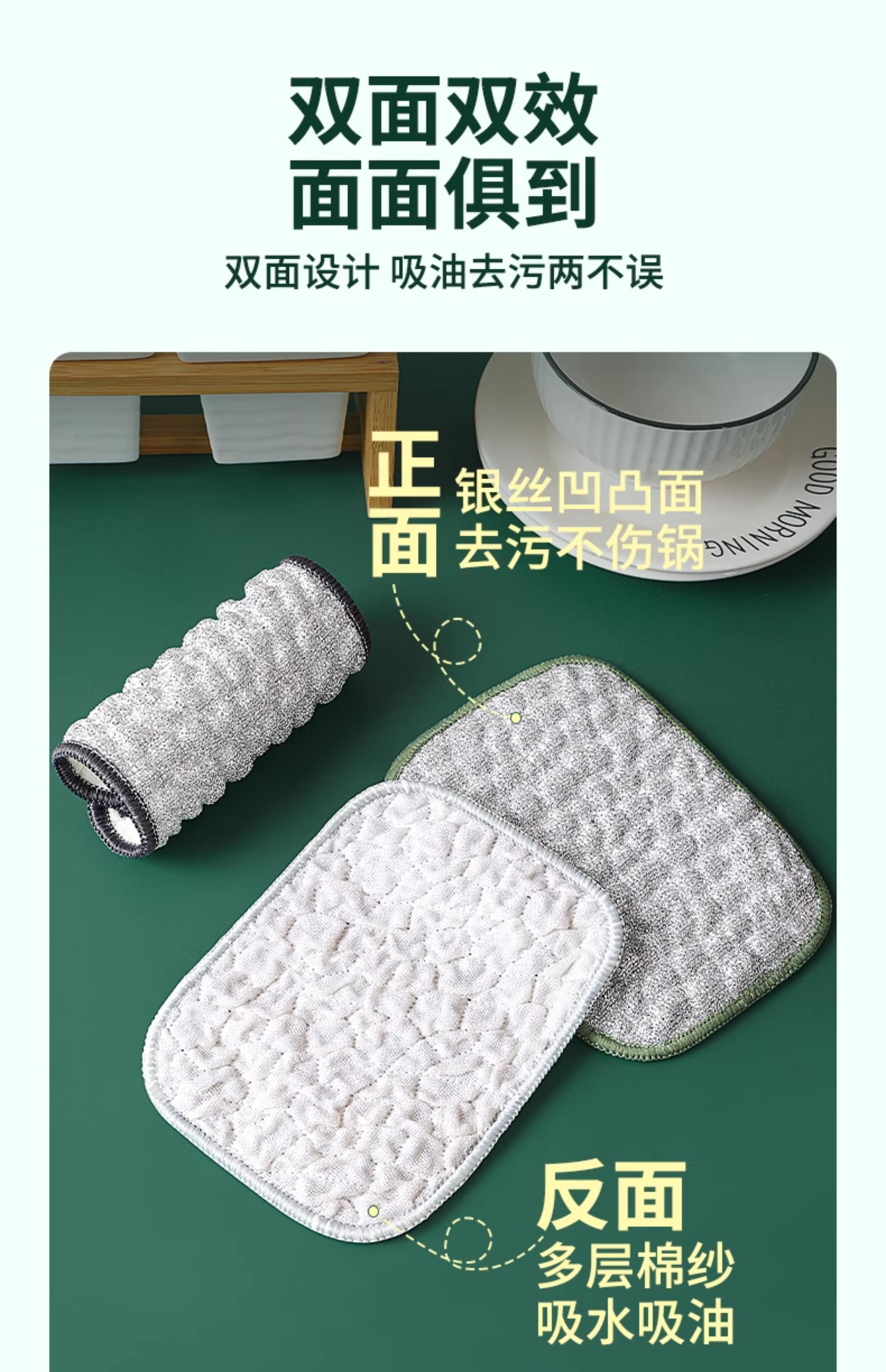 Paño para Lavar Platos al por Mayor Doble Capa Engrosado Antiadherente Aceite Toalla para Lavar Platos Estropajo Trapo Absorbente Gasa de Algodón Seda Plateada Cepillo para Lavar Platos