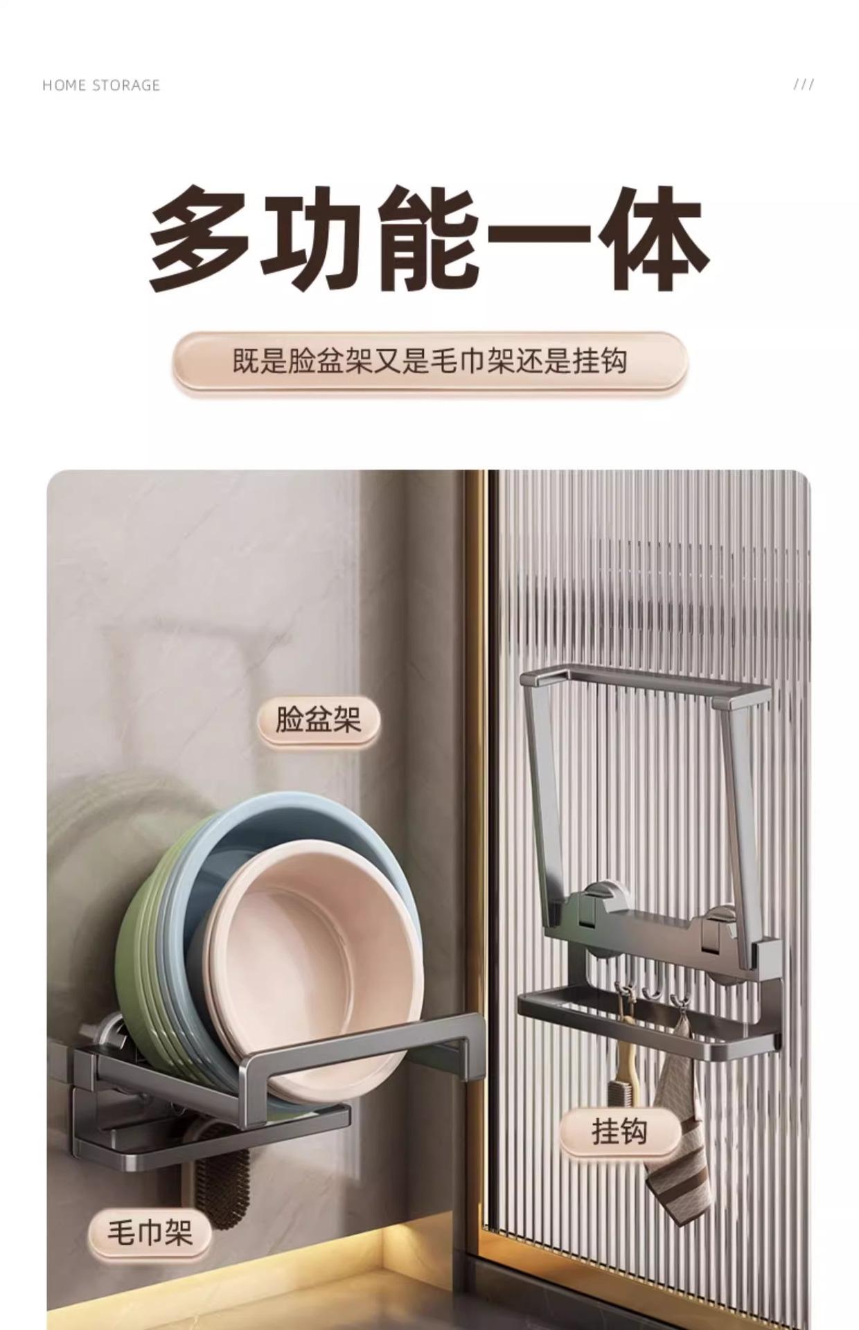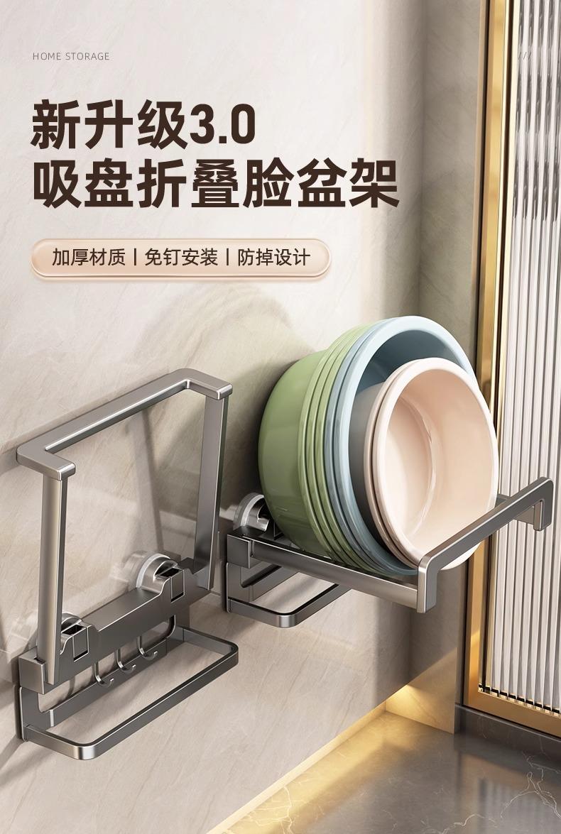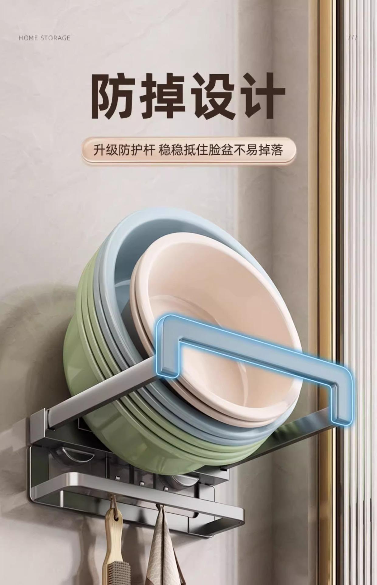 Gun Grey Thickened [Foldable Washbasin Stand] Double Layer with Rod and Hooks