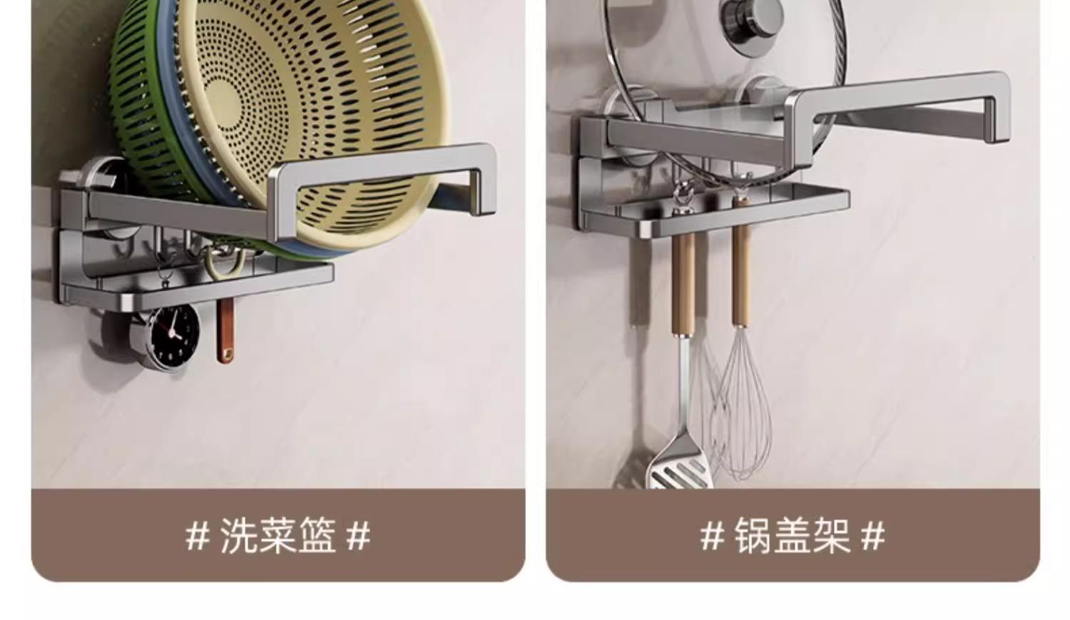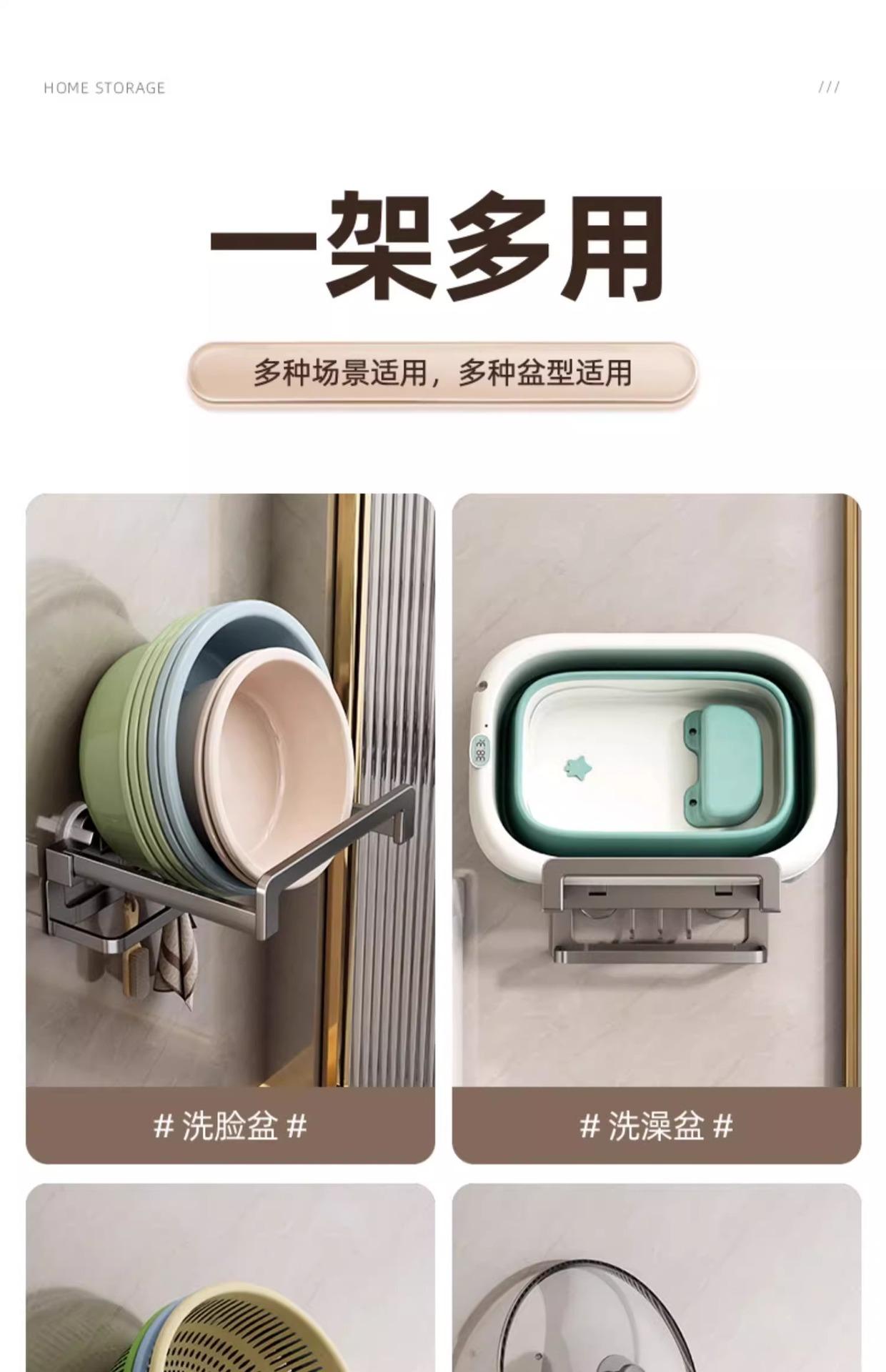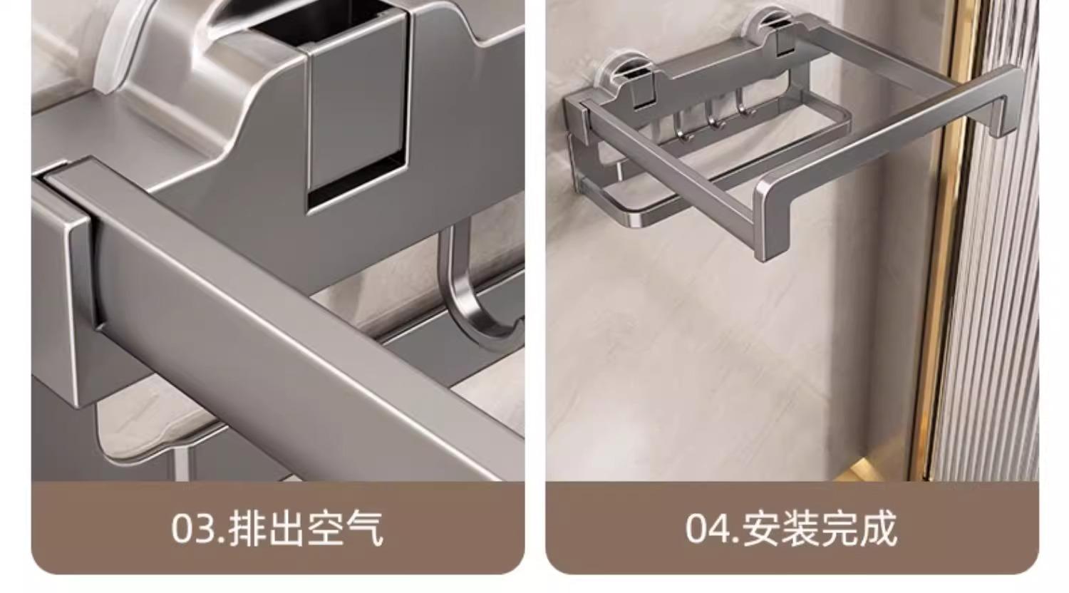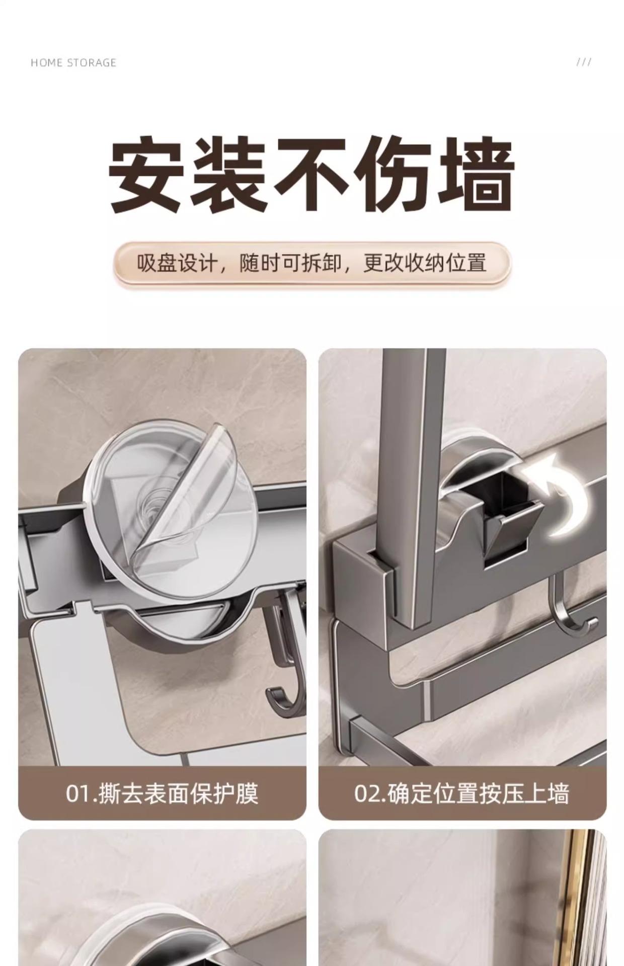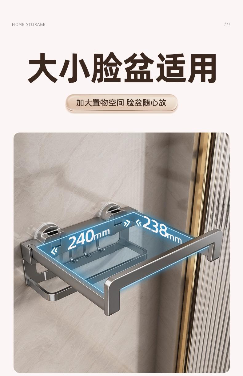 【Suction Cup Style】Gun Gray Washbasin Rack-with Hooks, 【Suction Cup Style】Gun Gray Washbasin Rack - Double Lay...