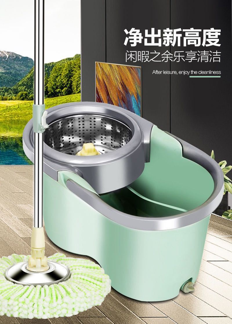 Cubo de Fregona Doméstico Cubo de Fregona Giratorio Fregona de Doble Impulsión Fregona Hashen Varilla de Acero Inoxidable Tambor de Fregona Presionado a Mano