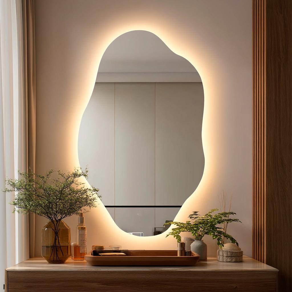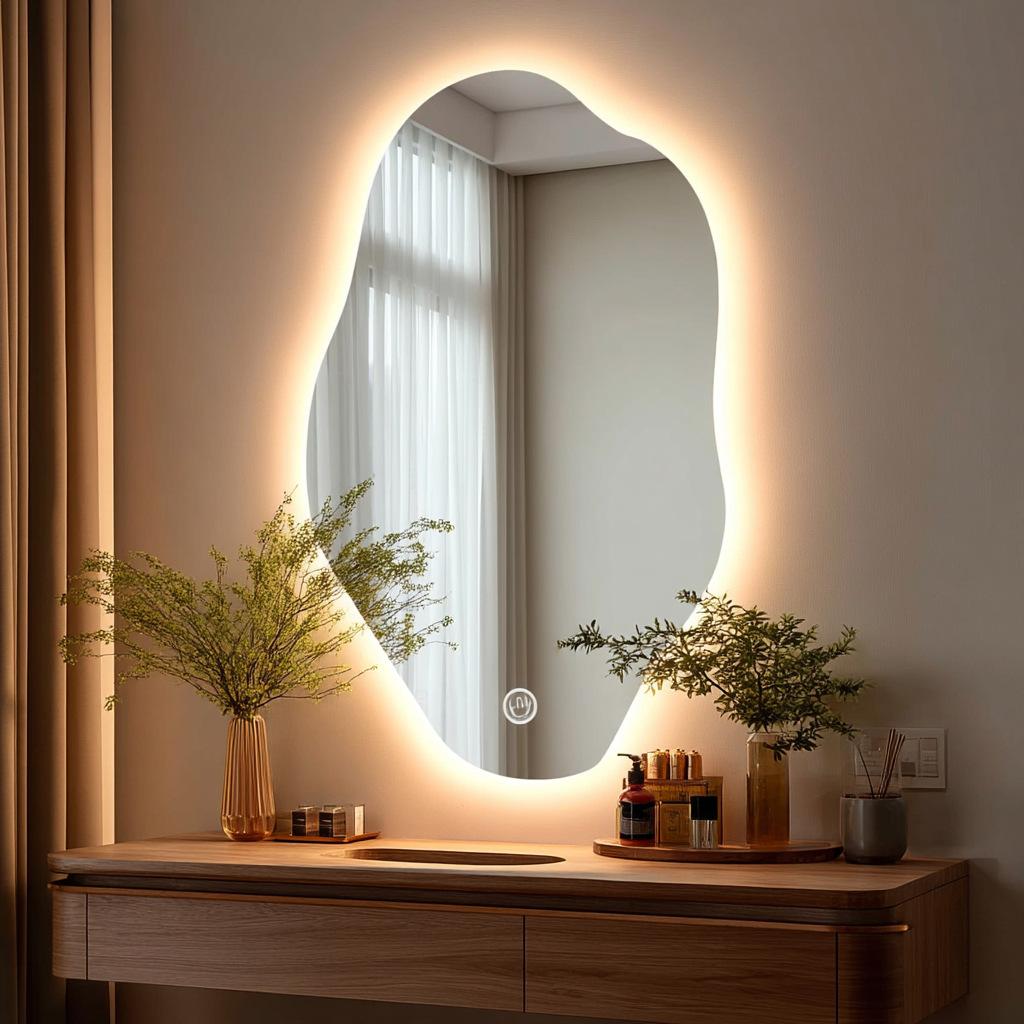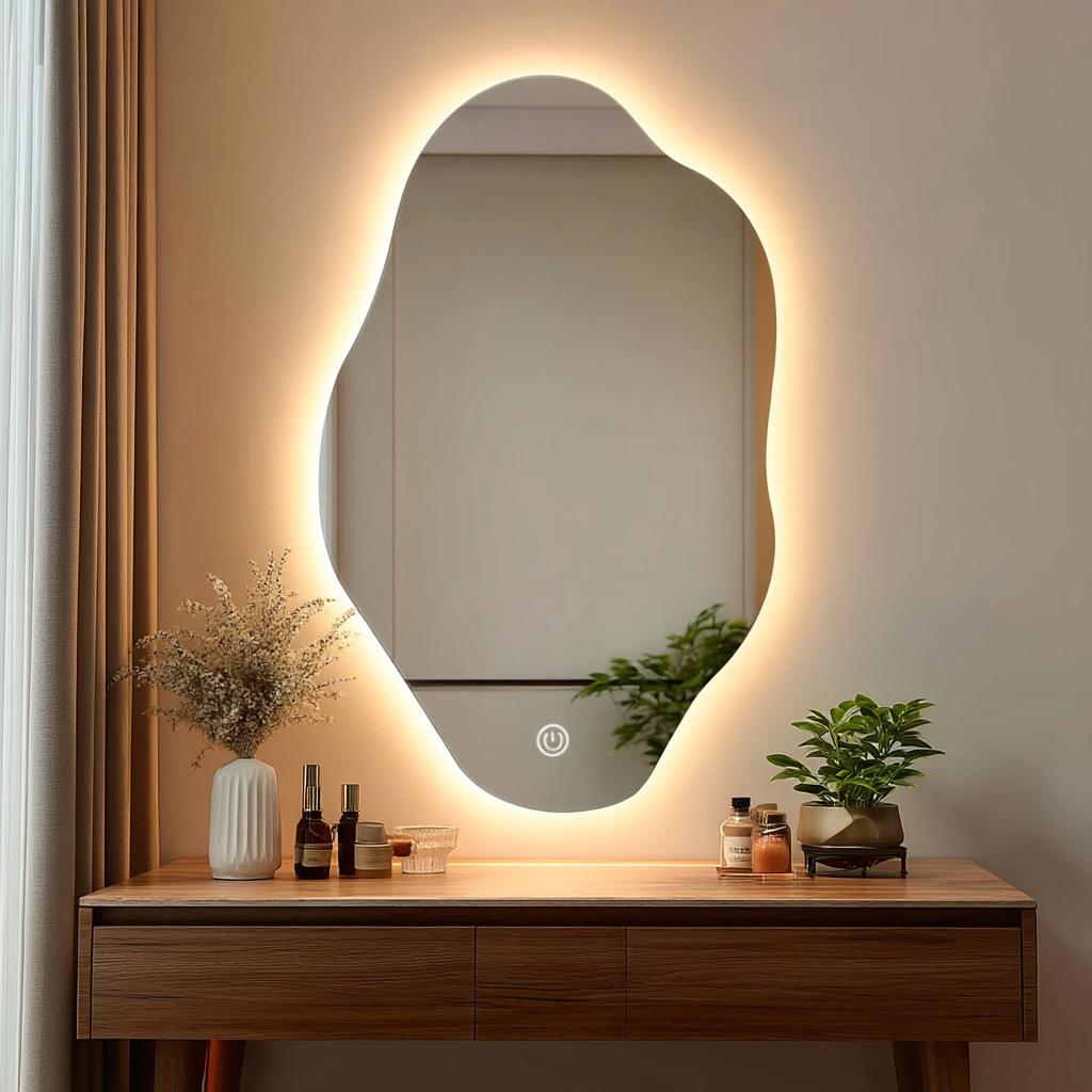 Espejo de Maquillaje Irregular Espejo de Baño Montado en la Pared Luz LED con Forma Espejo de Tocador Antivaho Espejo Inteligente Espejo de Prueba