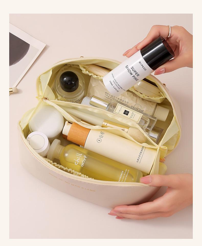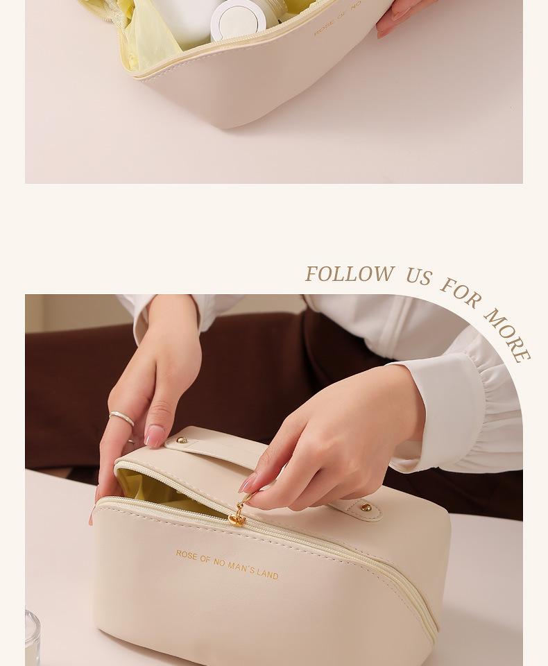 Nuevo Neceser de Maquillaje de Gran Capacidad, Bolsa de Almacenamiento de Cosméticos a la Moda, Bolsa de Almohada de Viaje Portátil de Cuero PU para Artículos de Aseo