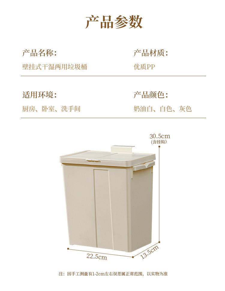 Bote de Basura de Cocina para Montar en la Pared, Contenedor Doméstico para Separación Seca y Húmeda, Clasificación de Residuos de Cocina, Puerta de Gabinete, Bote de Basura para Montar en la Pared con Tapa