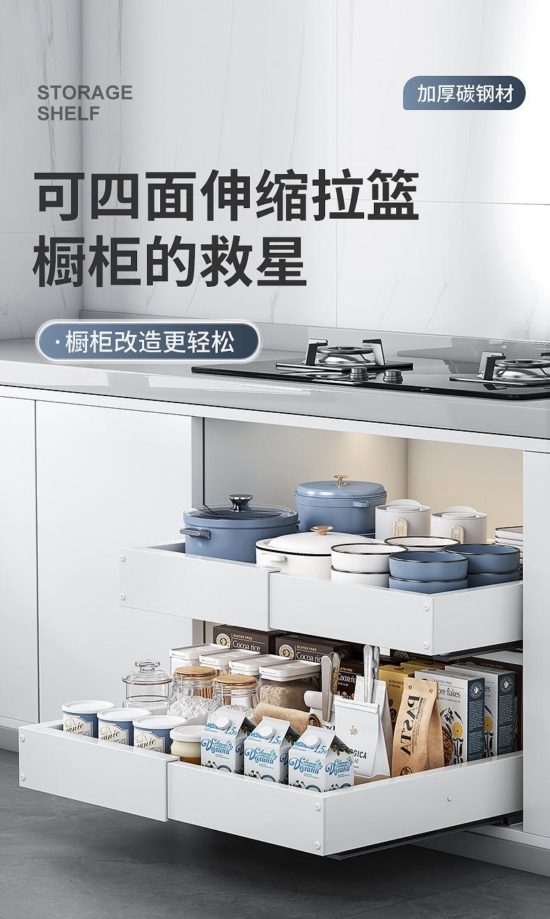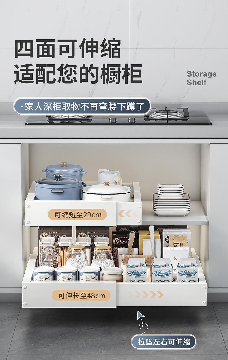 Cesta Extraíble Transfronteriza Estante de Almacenamiento Extraíble para Gabinete Retráctil Cesta para Debajo del Fregadero Estante de Almacenamiento Tipo Cajón para Cocina