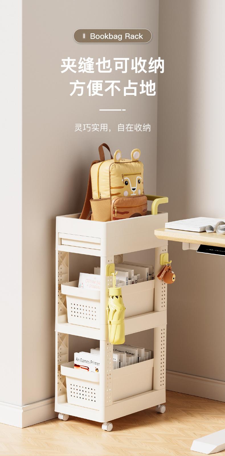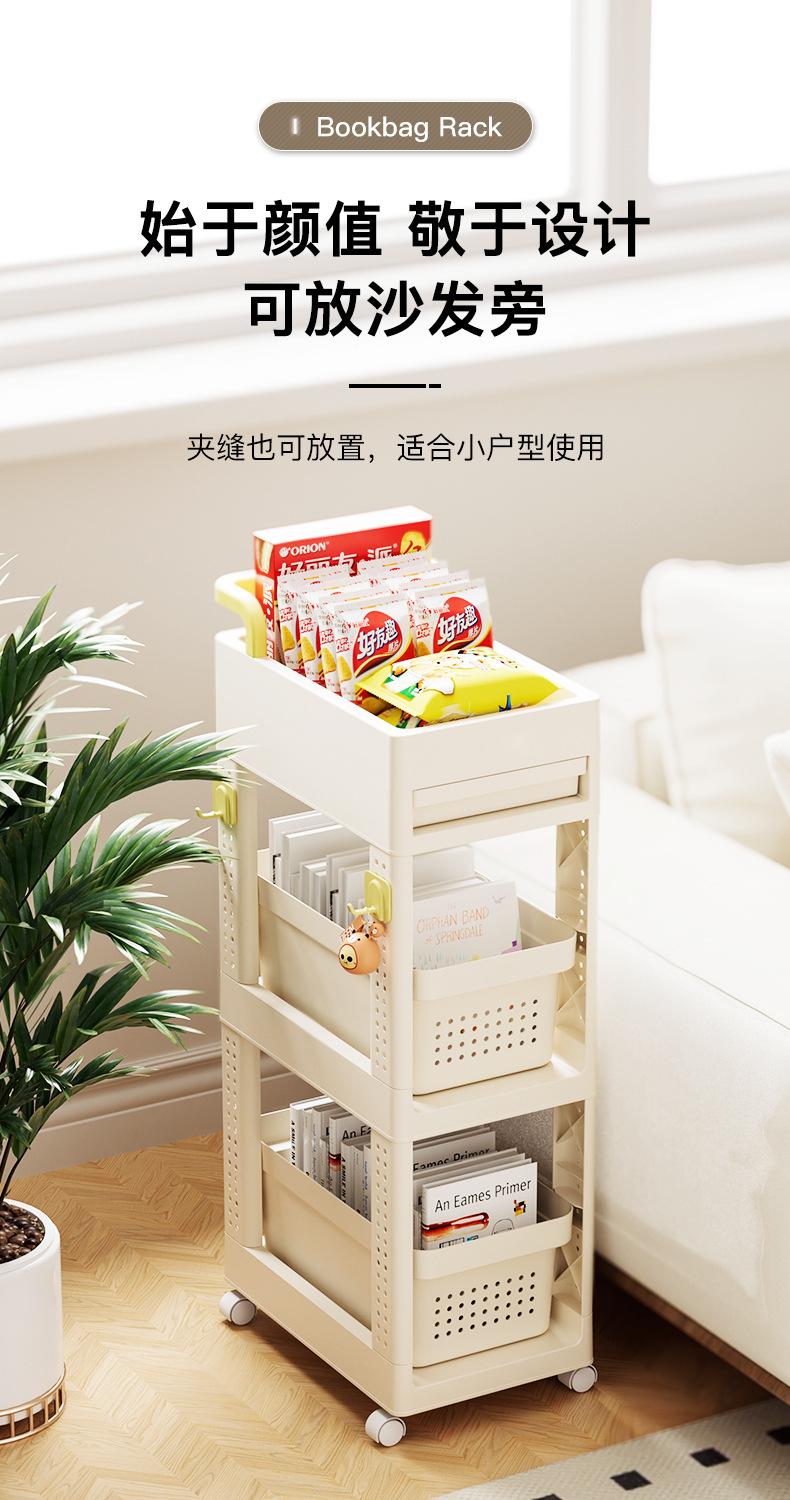 Estante de Almacenamiento Doméstico Estante de Almacenamiento de Libros Multifuncional Carrito Estante de Almacenamiento Móvil Dormitorio Estudio Gabinete de Almacenamiento Sándwich