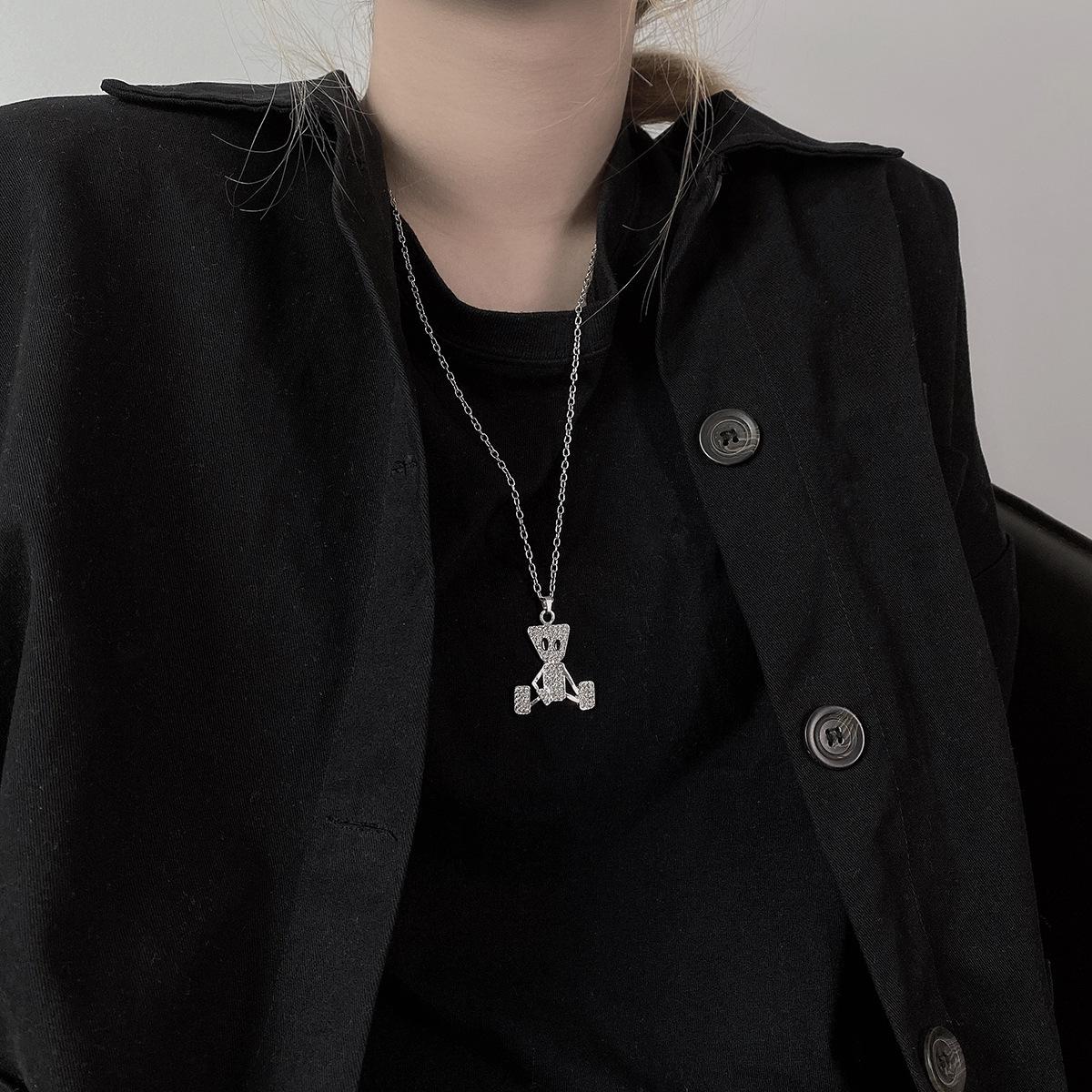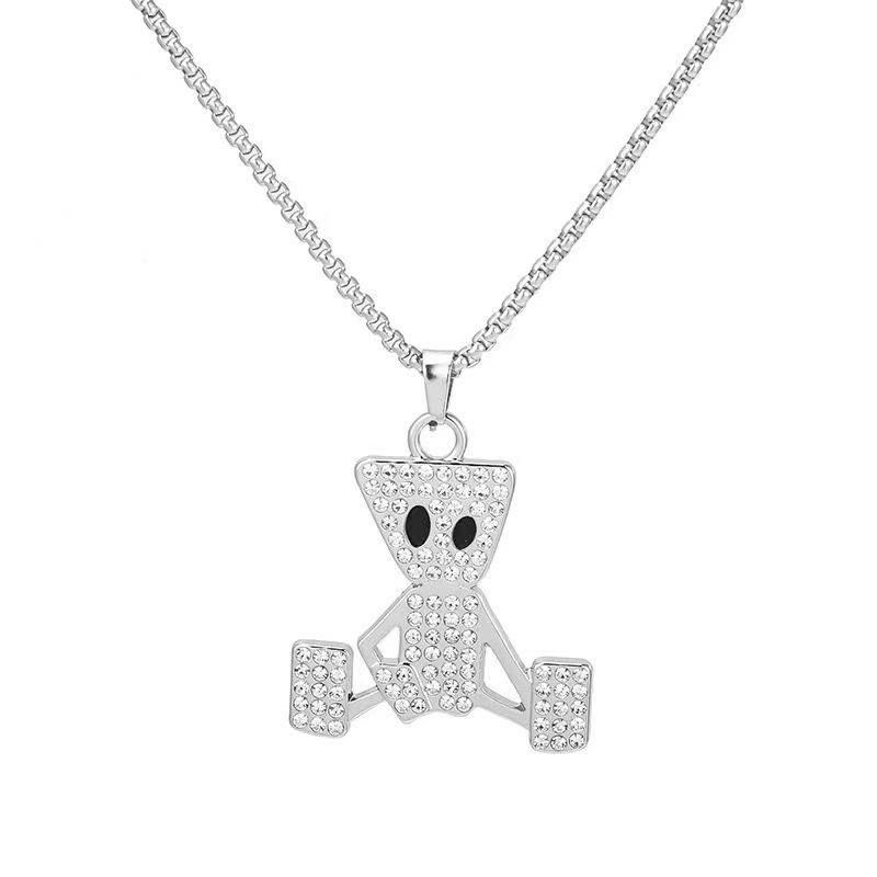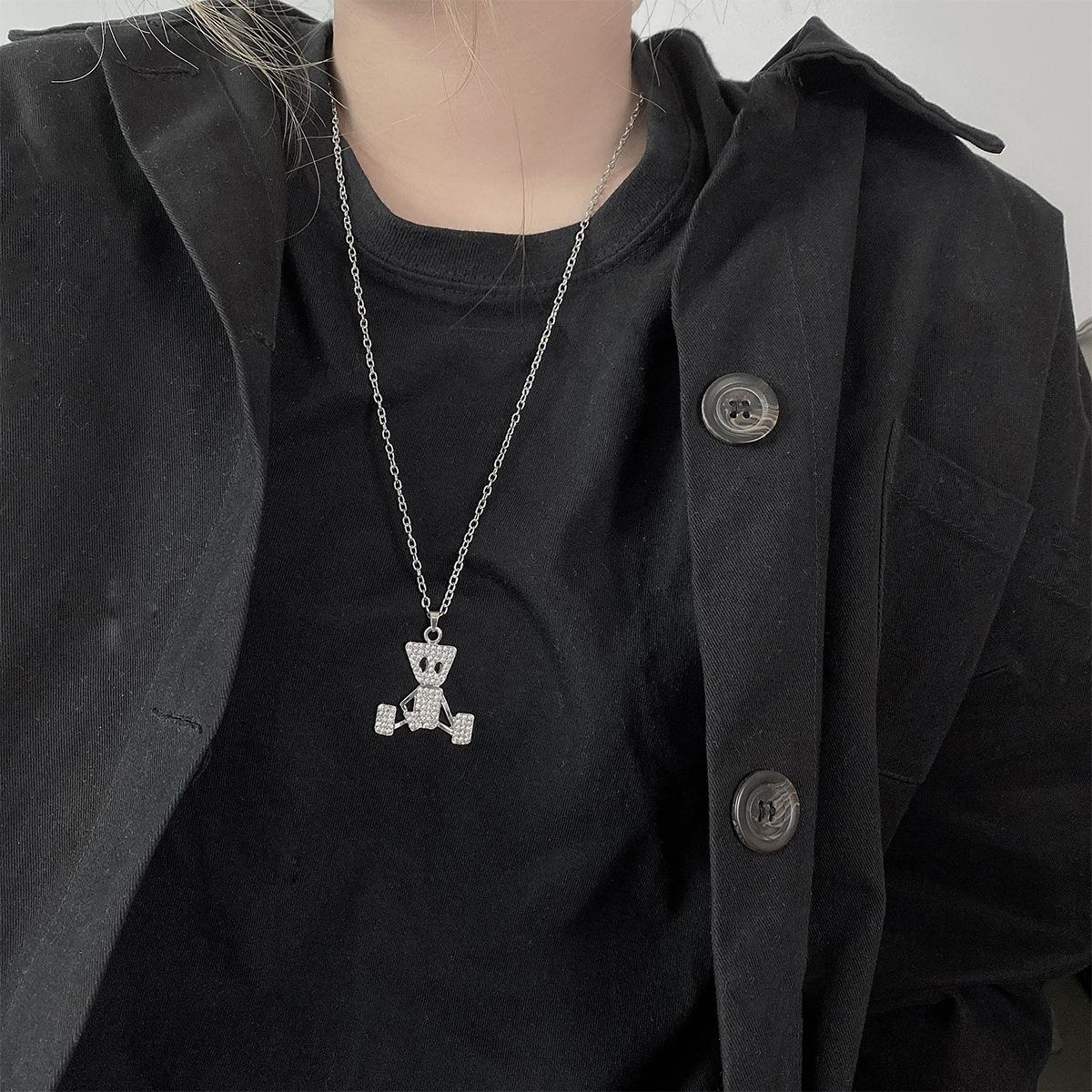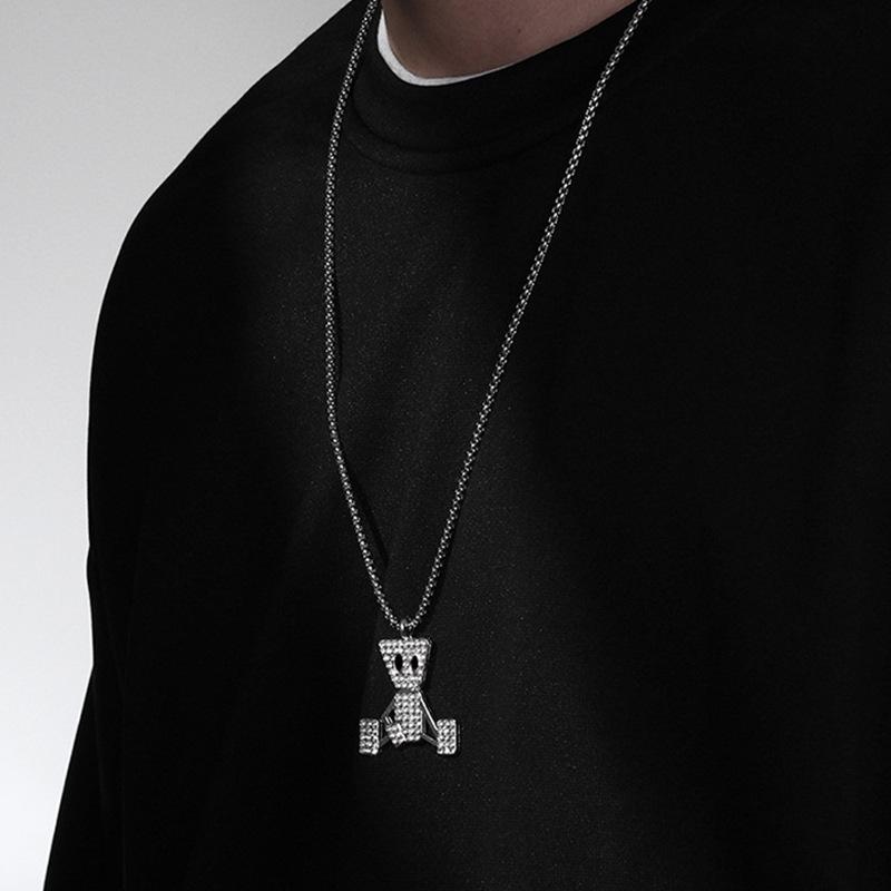 Colgante de Marioneta Simple de Hip-Hop con Diamante Collar de Acero de Titanio Estilo Frío ins Distintivo Moderno Marca Cadena Larga de Lana para Hombre