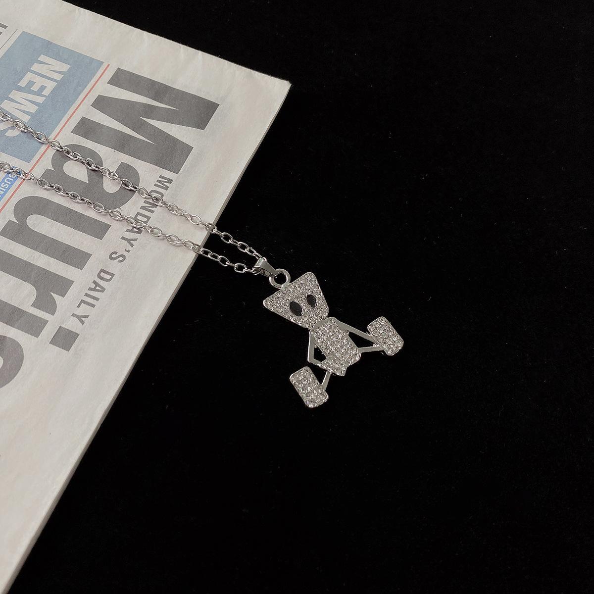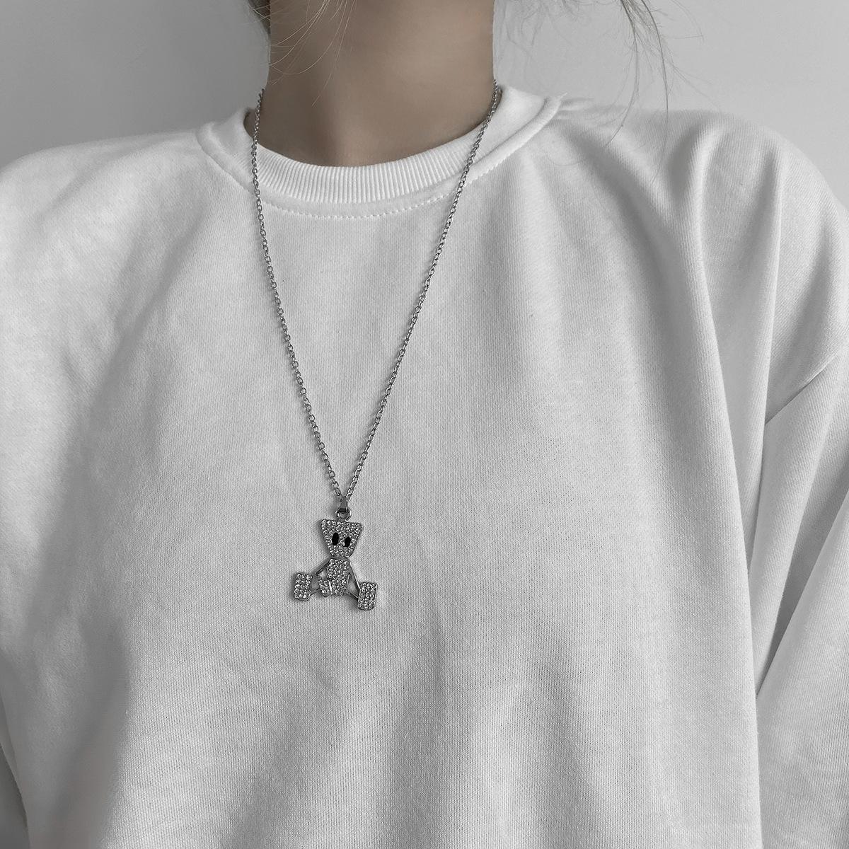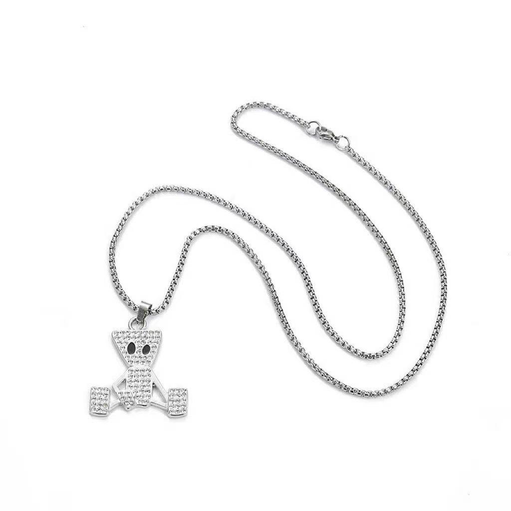Colgante de Marioneta Simple de Hip-Hop con Diamante Collar de Acero de Titanio Estilo Frío ins Distintivo Moderno Marca Cadena Larga de Lana para Hombre