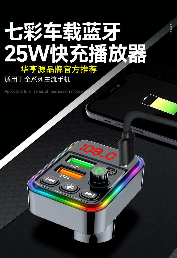 Marca Huahengyuan Reproductor MP3 Bluetooth para Coche Carga Superrápida PD25W Transmisor Bluetooth Reproducción de Disco U
