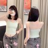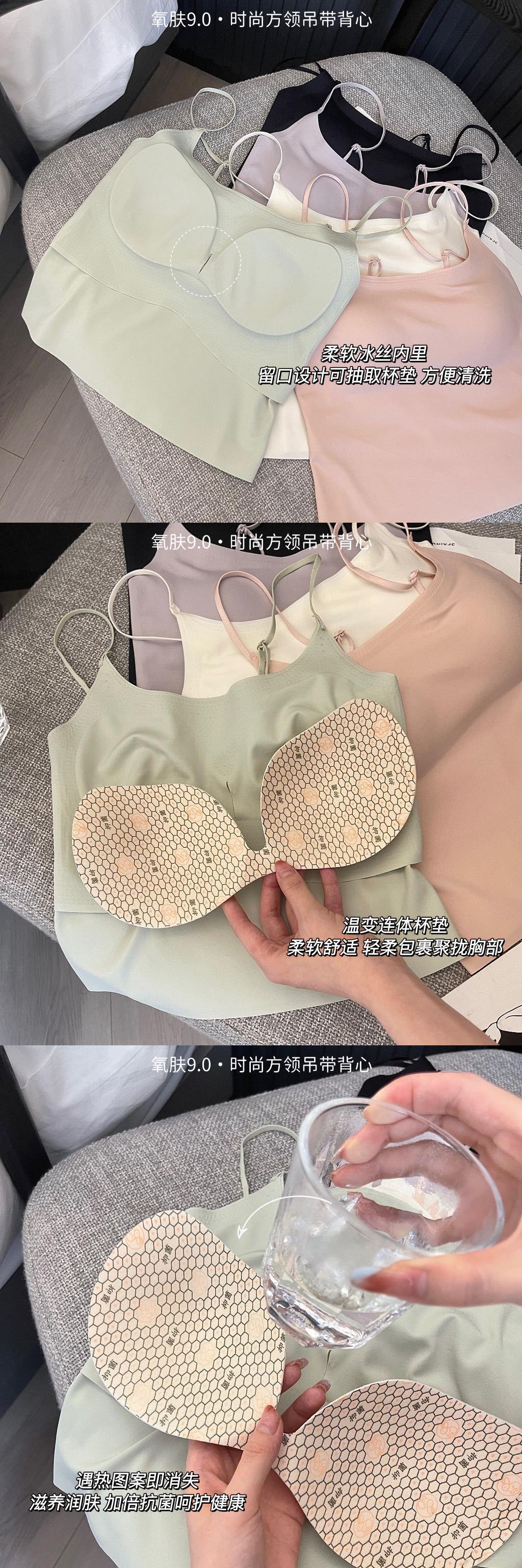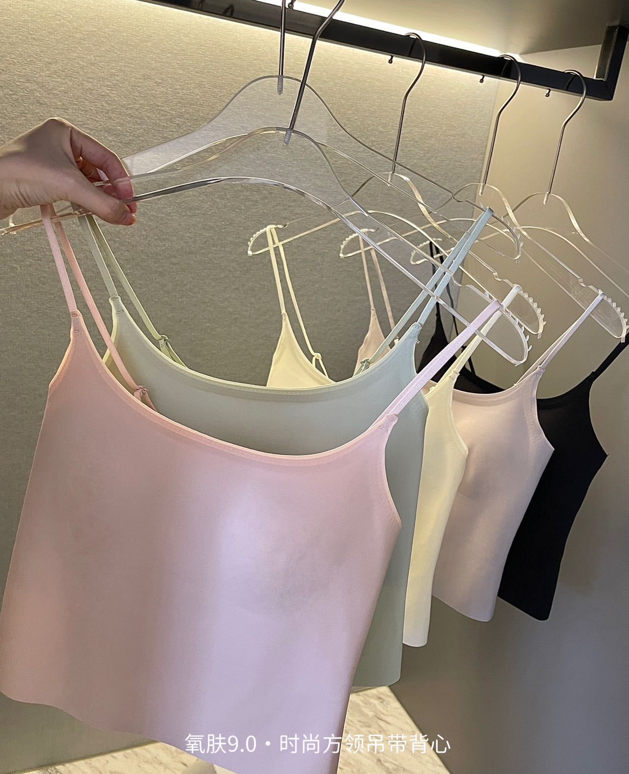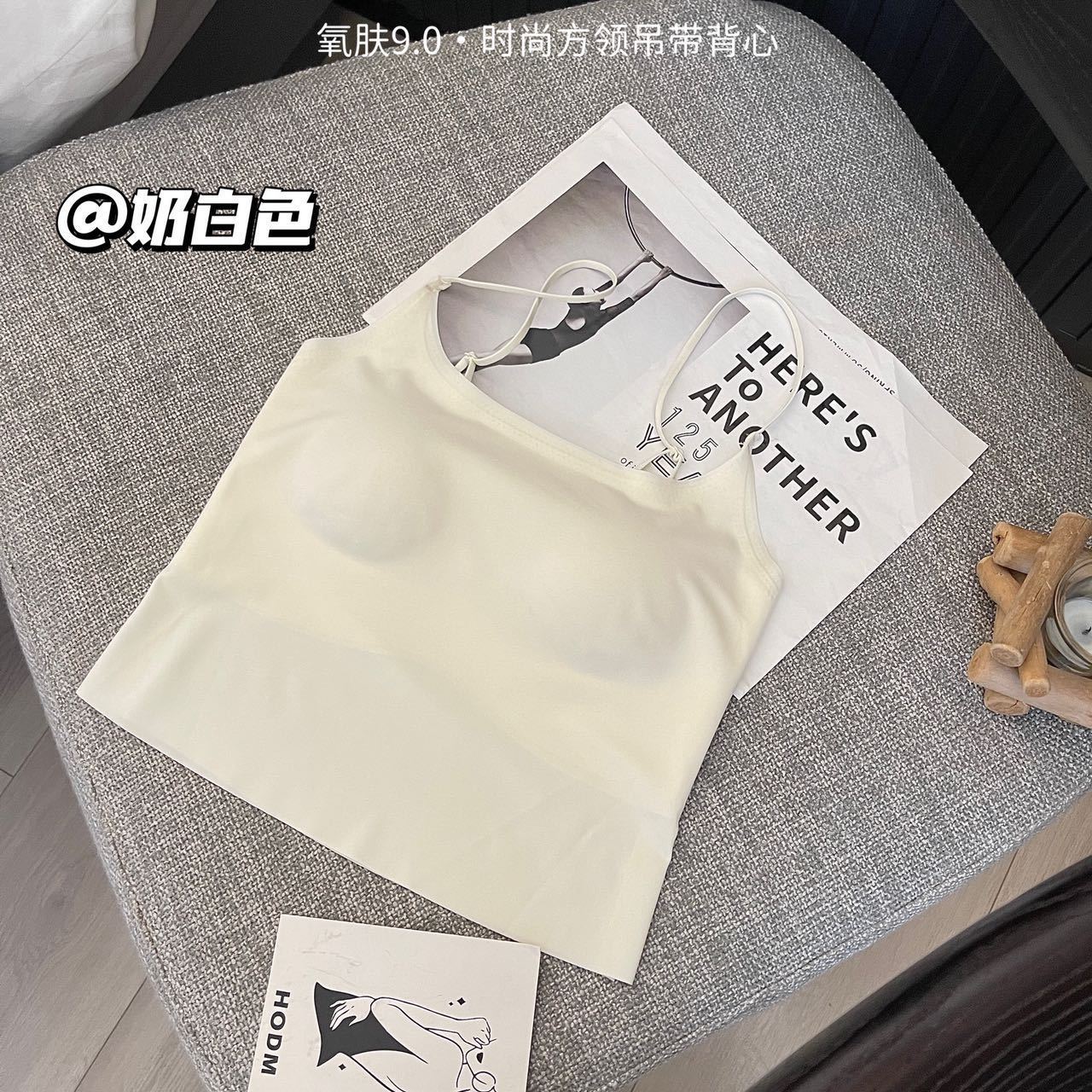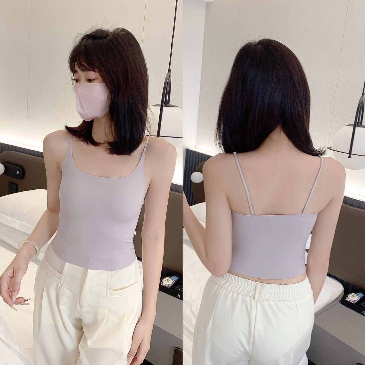 Camisola de seda de hielo para mujer, verano, ropa interior con sujetador integrado con almohadilla en el pecho, encaje sexy para la espalda descubierta, top de tubo para uso exterior