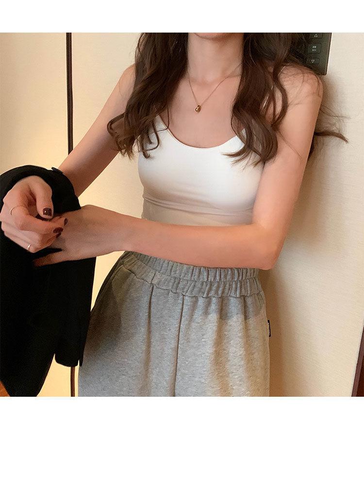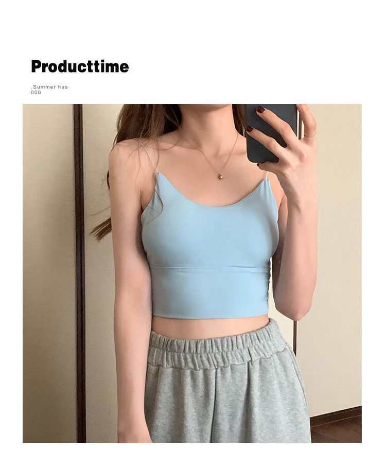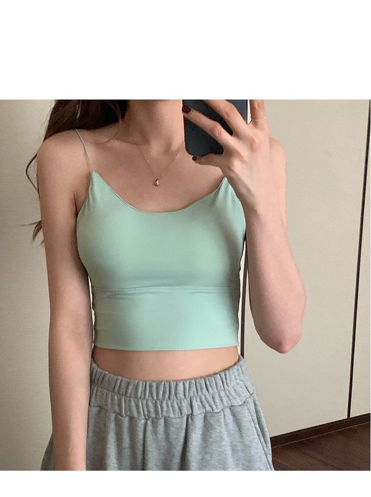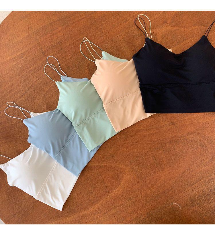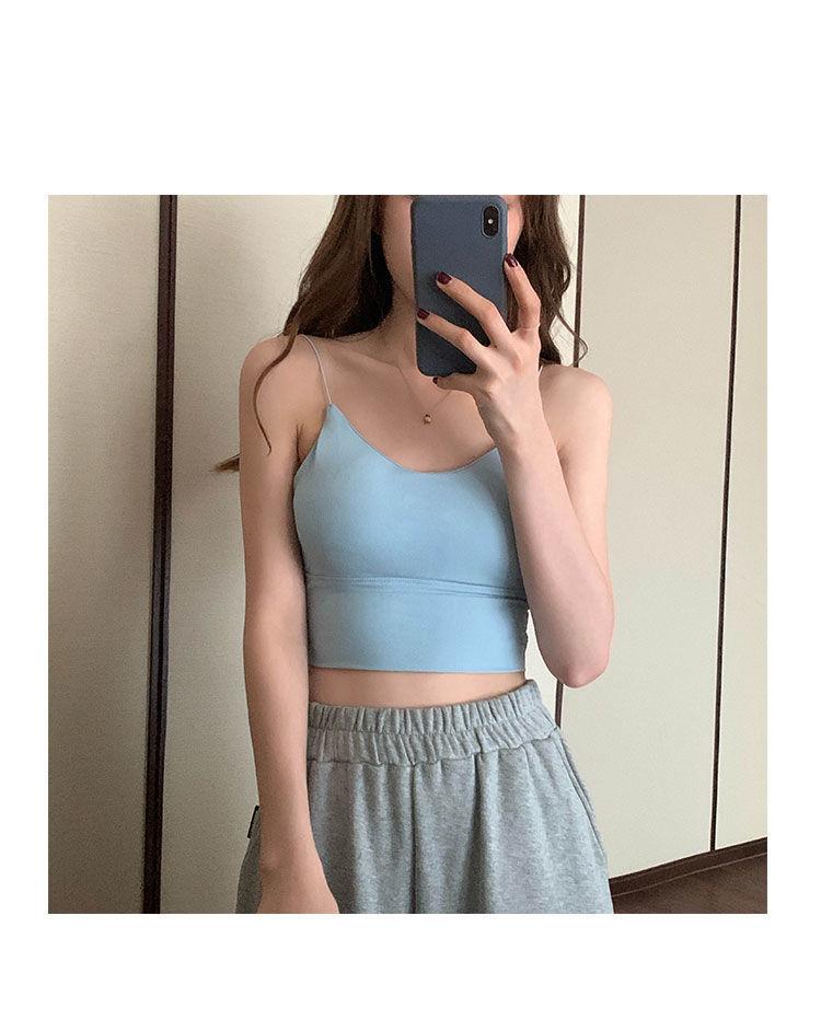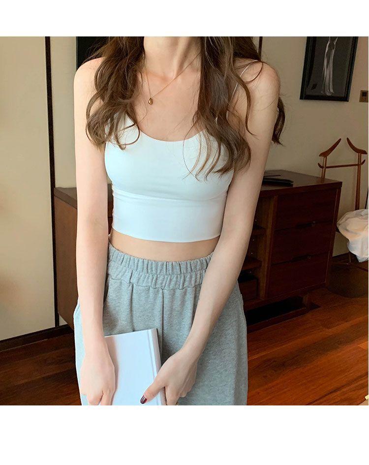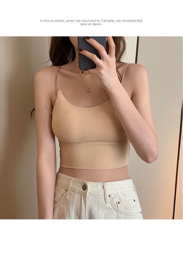 Top de tubo sin tirantes de color sólido sin costuras estilo coreano para mujer con almohadilla en el pecho