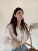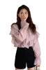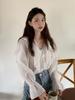Camisa de gasa de manga larga para mujer Primavera y Otoño 2023 Nuevo diseño Sentido Delgado Irregular con volantes Apilado Top