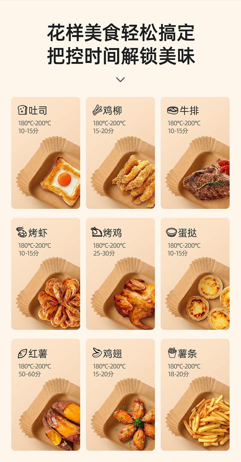 Papel Especial para Freidora de Aire Cuadrado Doméstico Papel Absorbente de Aceite Alimentos Resistente a Altas Temperaturas Papel de Silicona para Hornear Herramienta de Papel Forro