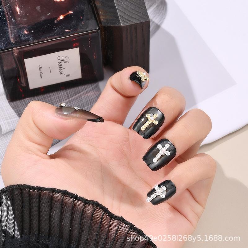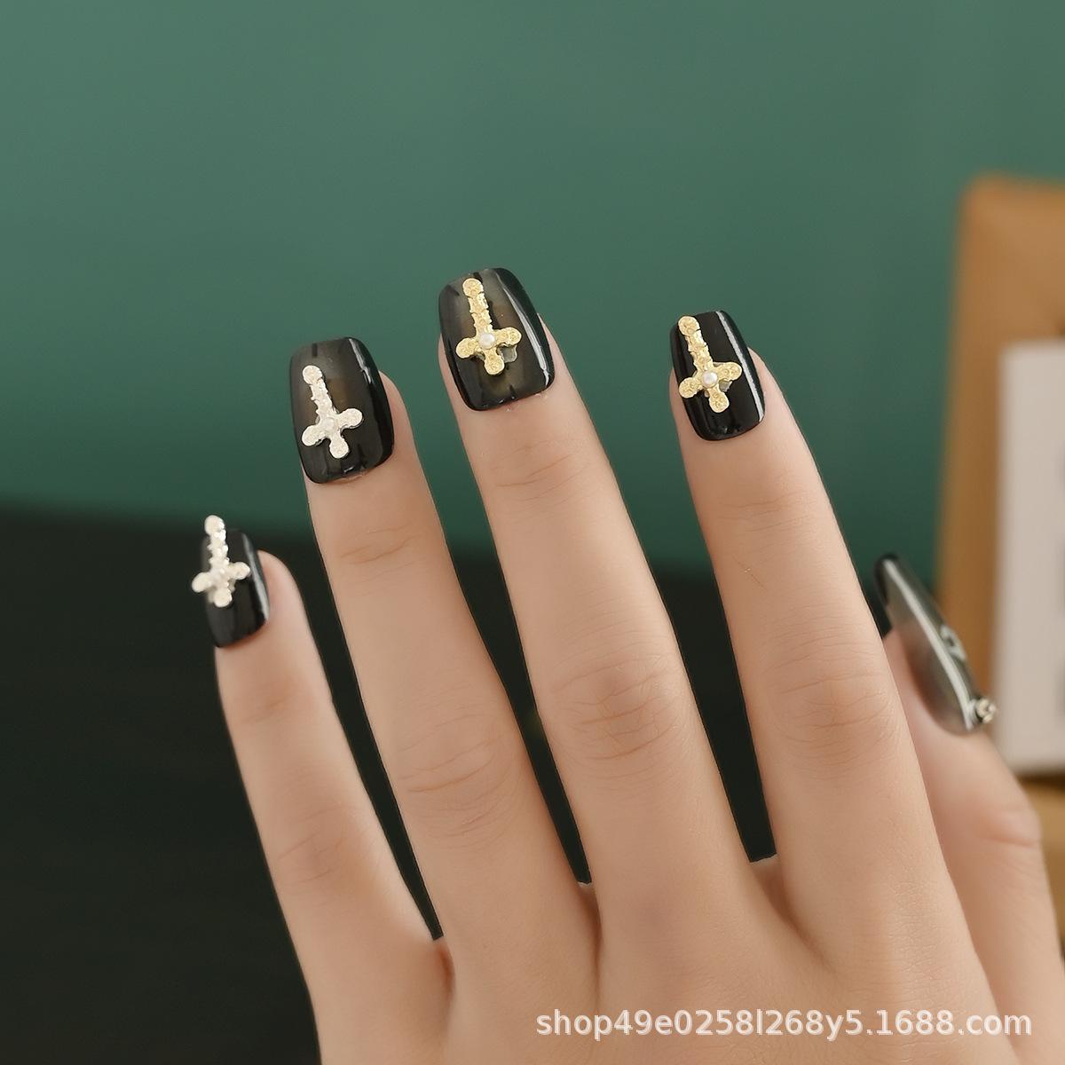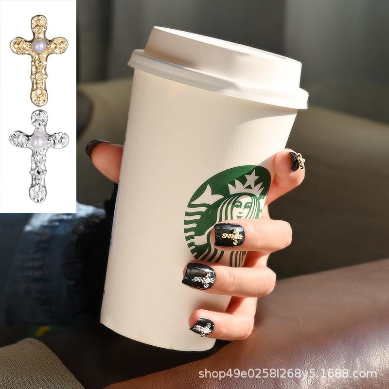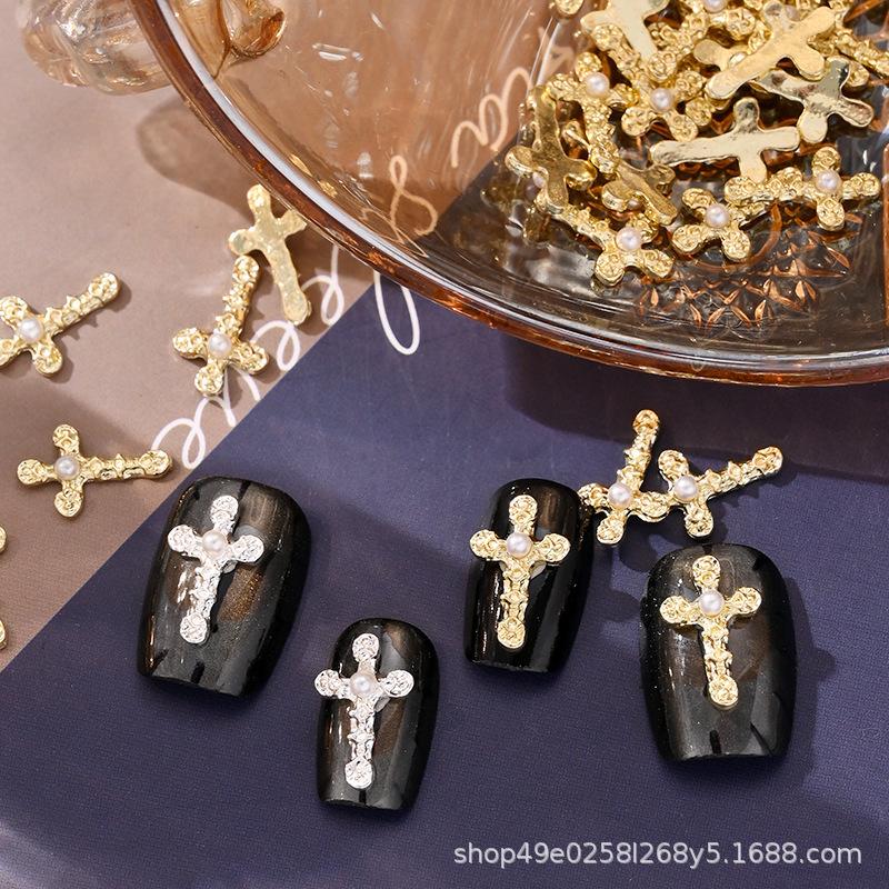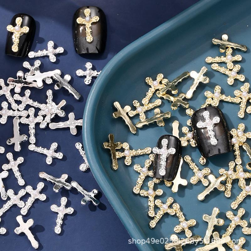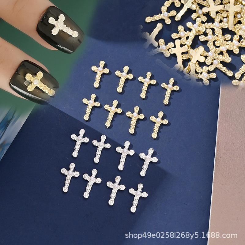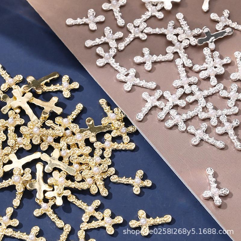Nuevo Arte de Uñas Cruz Accesorios de Arte de Uñas Cruz de Perla Simple Metal Accesorios de Fábrica para Arte de Uñas