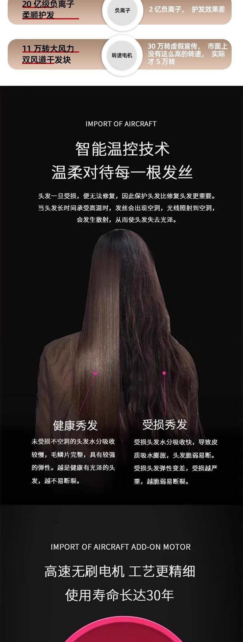 Secador de Cabelo Iônico Negativo de Alta Velocidade com Secagem Rápida em 10 Segundos Secador de Cabelo Oco sem Lâminas Tubo de Água Morison