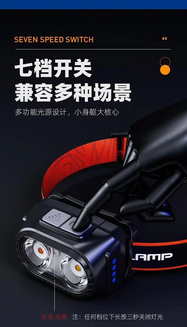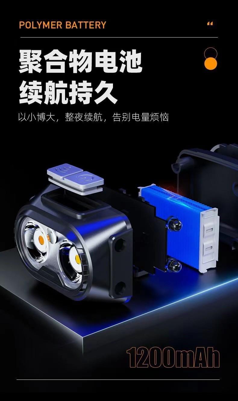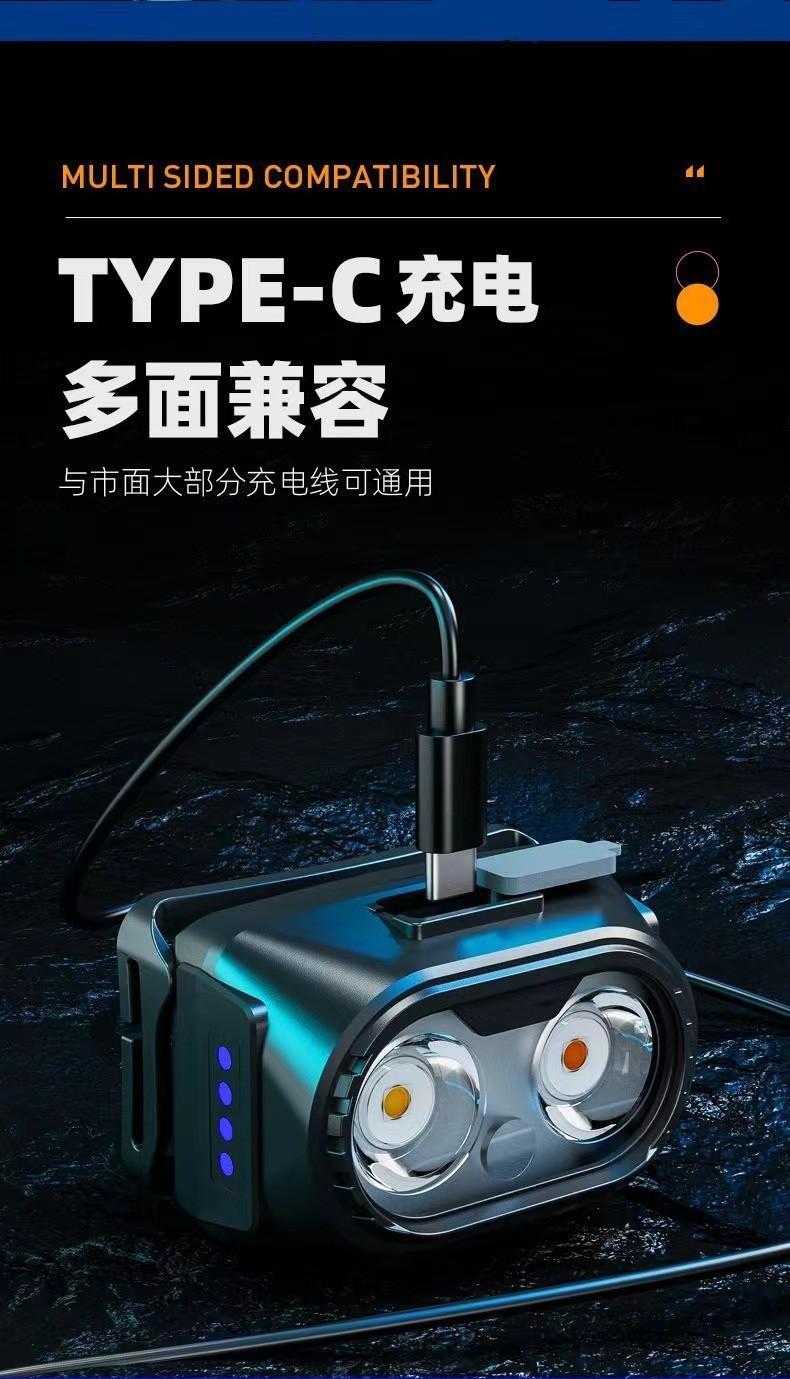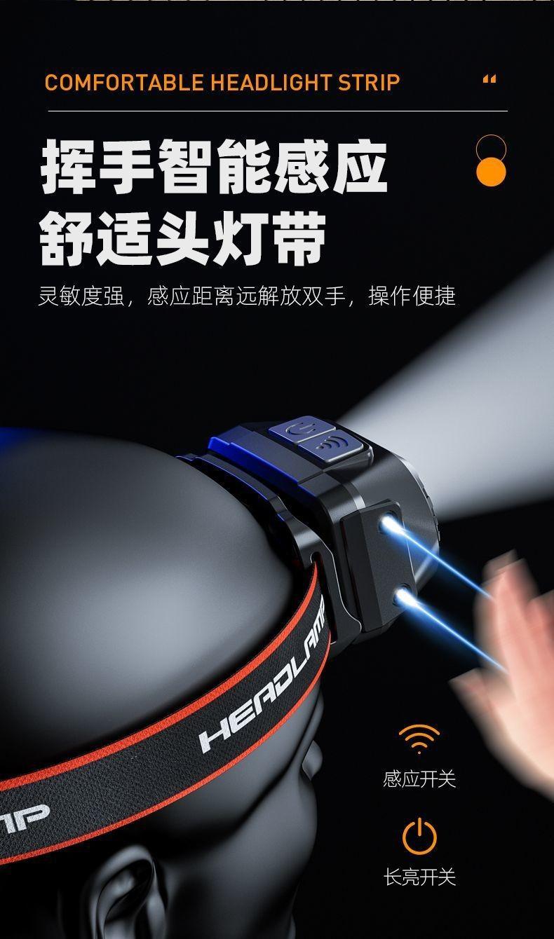 Linterna frontal potente con carga súper brillante para exteriores, montada en la cabeza, inducción, pesca nocturna, LED especial, batería de larga duración