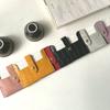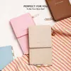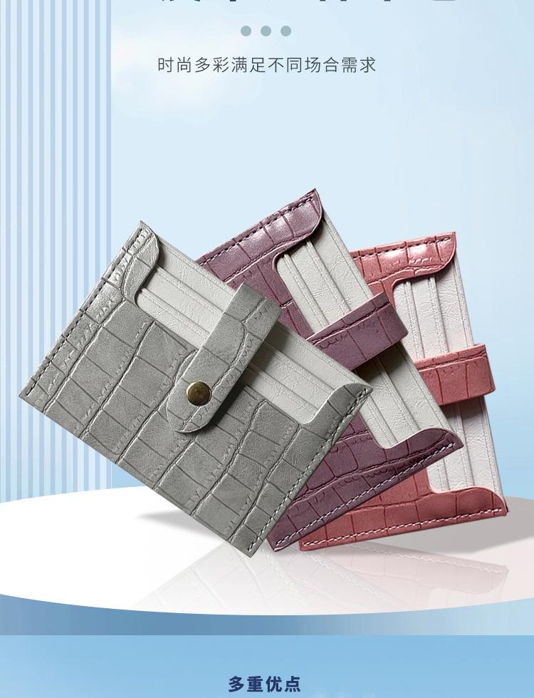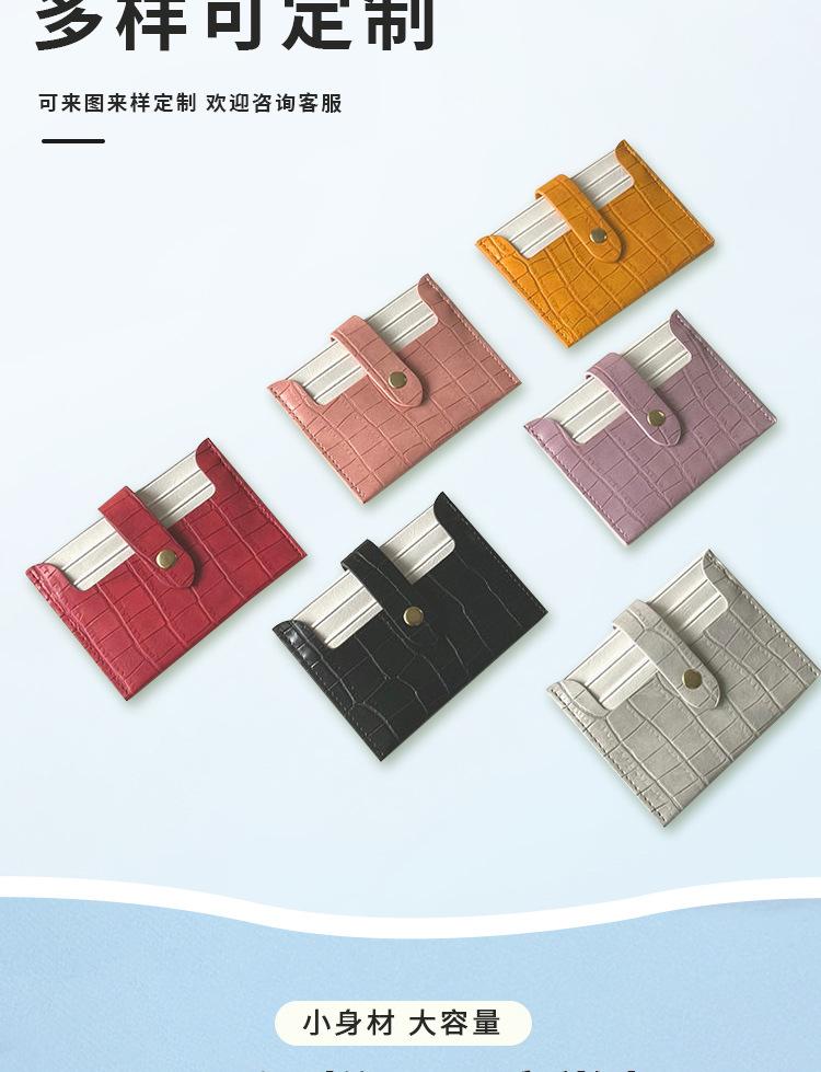 Portatarjetas de identificación para niñas de cuero PU multicolor con punto cruzado, tarjetero portátil con hebilla metálica, tarjetero antimagnetización