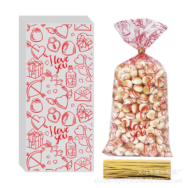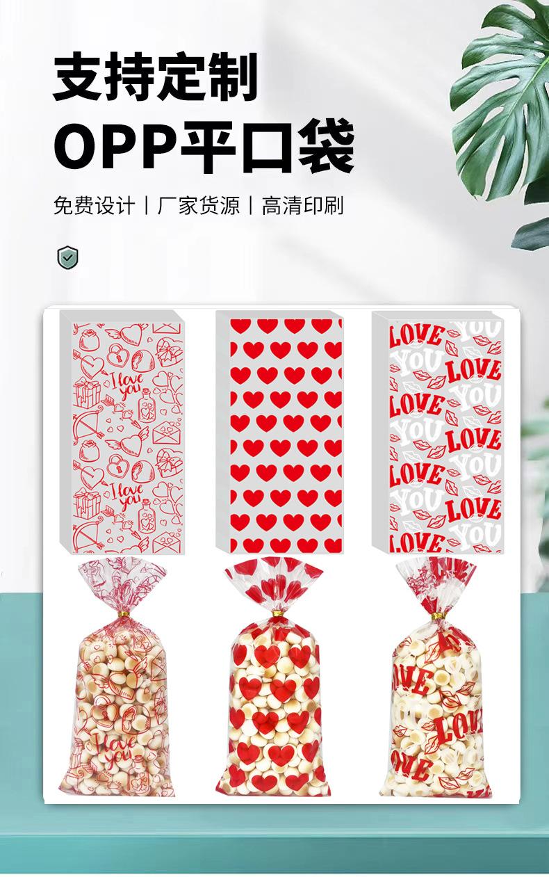 Nuevo Producto Transfronterizo Bolsa de Embalaje de Dulces para el Día de San Valentín Bolsa Plana de OPP de Papel Cristal Bolsa para Snacks de Regalo para Fiesta